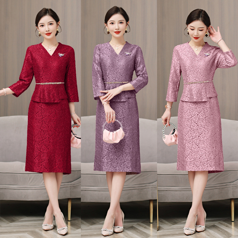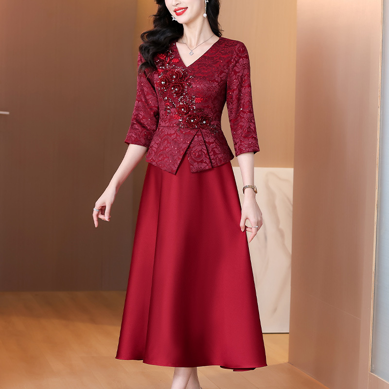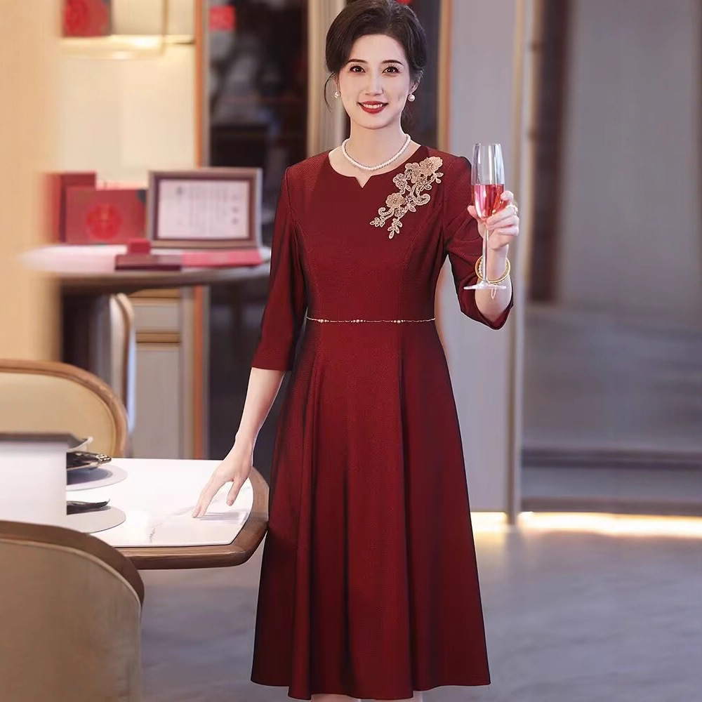 yhfs7941喜婆婆婚宴装酒红色礼服裙2025夏季洋气年轻妈妈装连衣裙