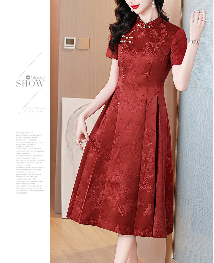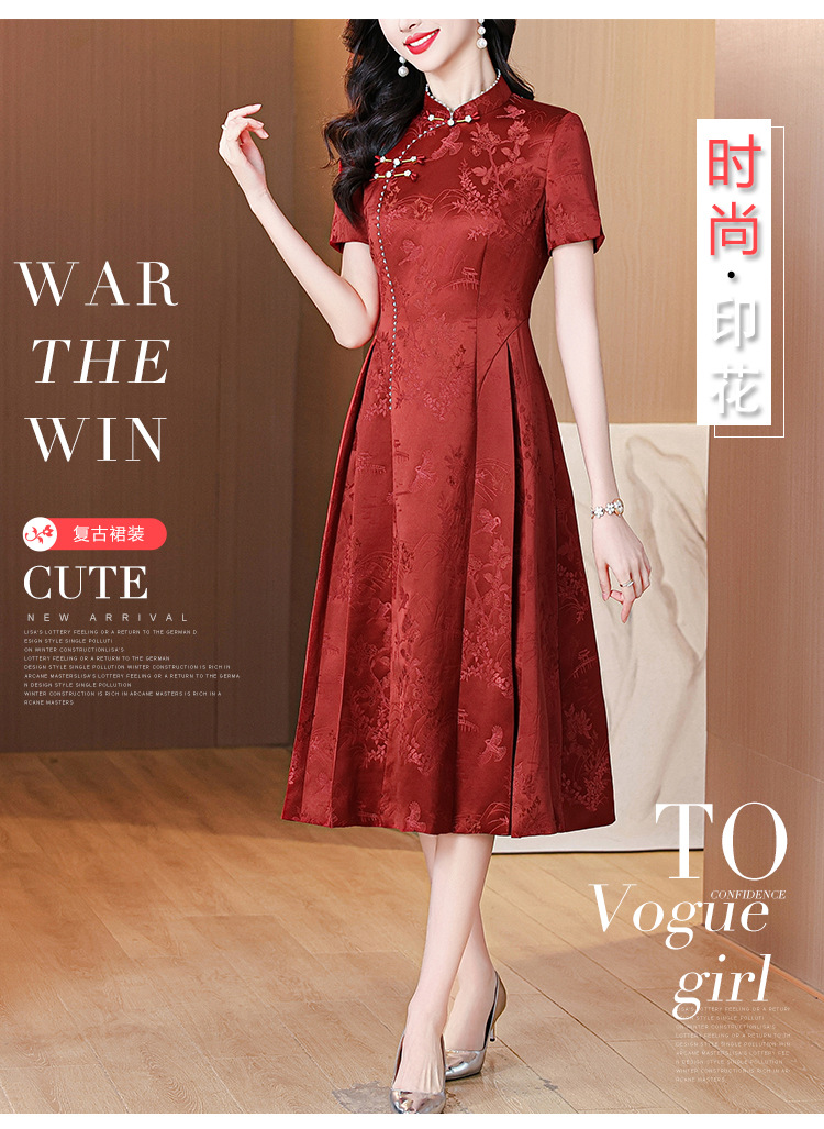 Nrm7998新中国風喜姑チャイナドレス2025夏新作高級感半袖ワンピース女性