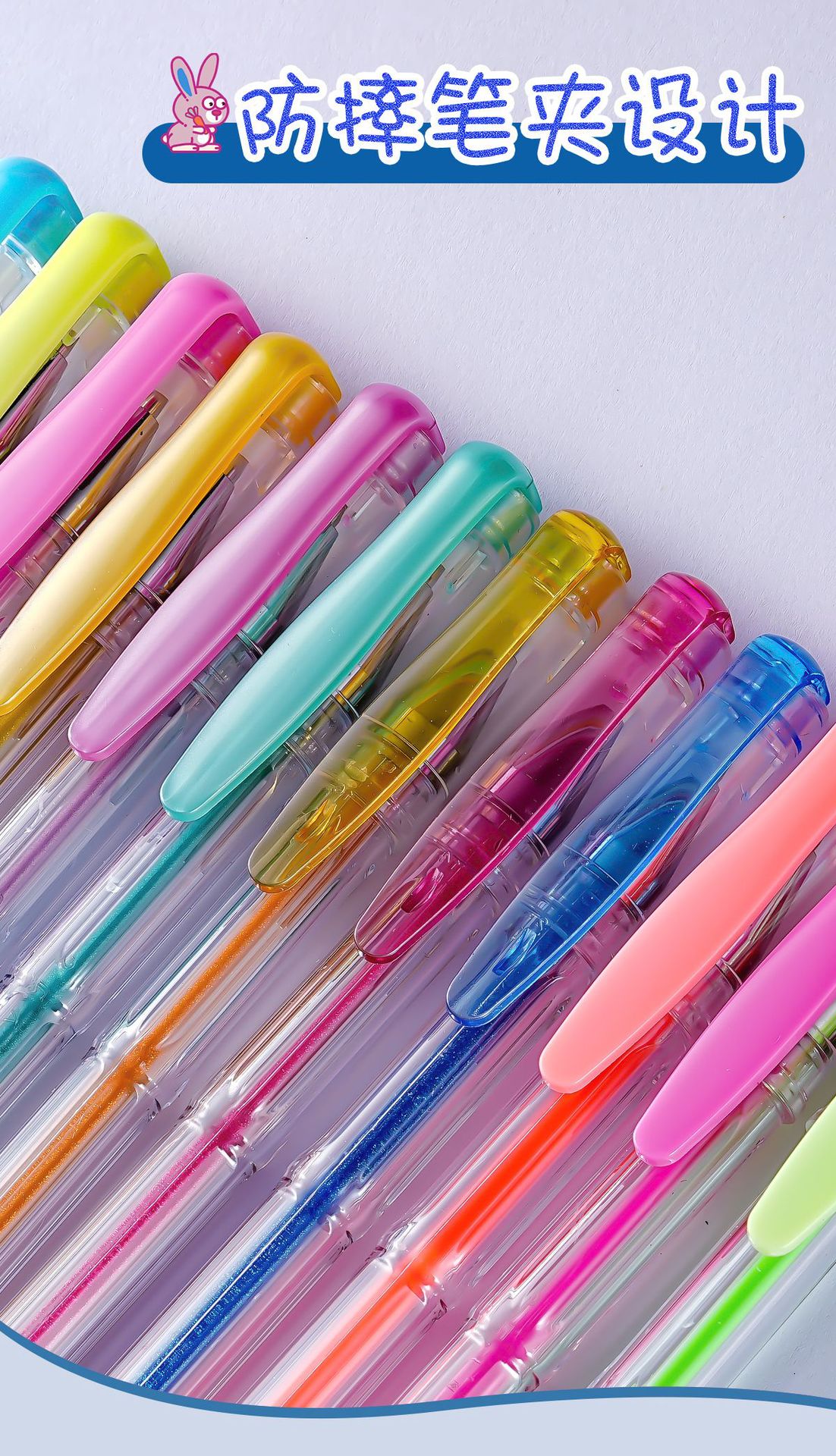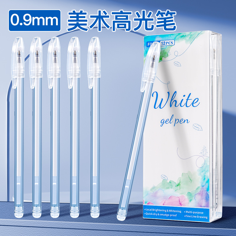 透明杆白色高光凝胶笔高光笔速干