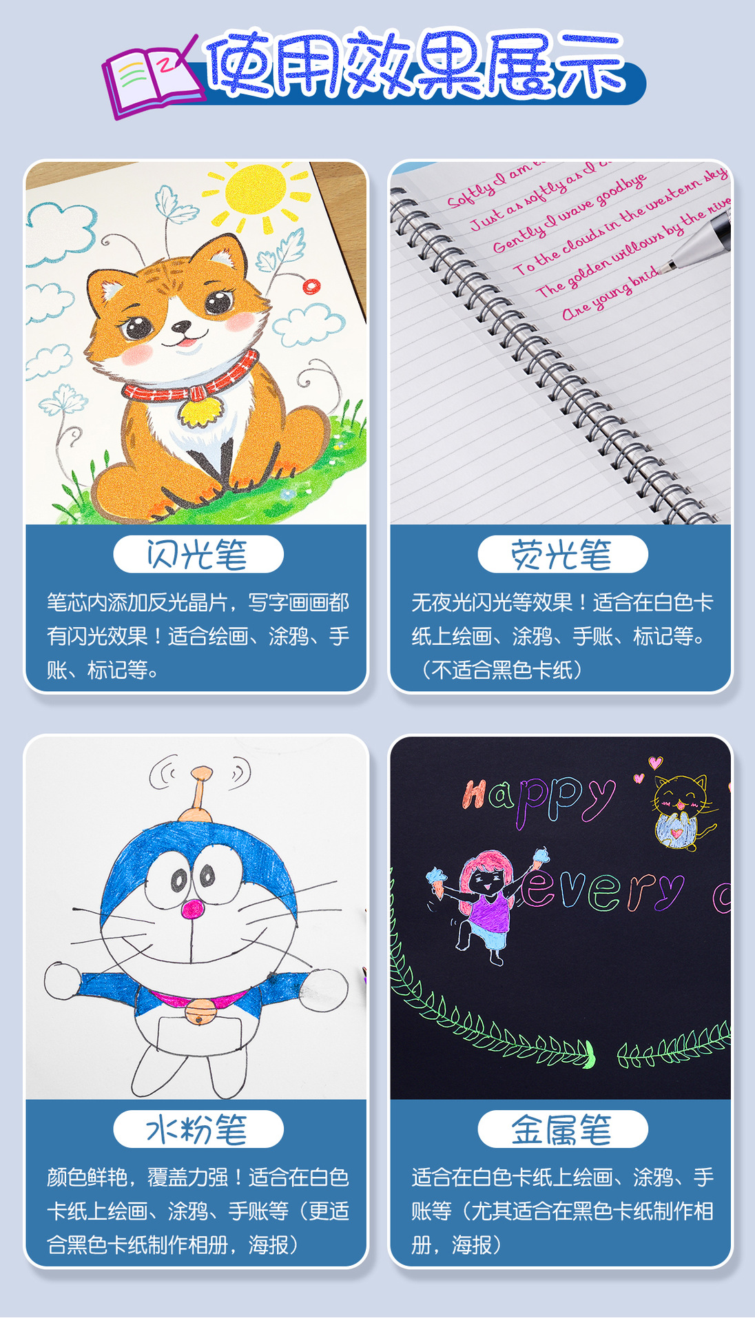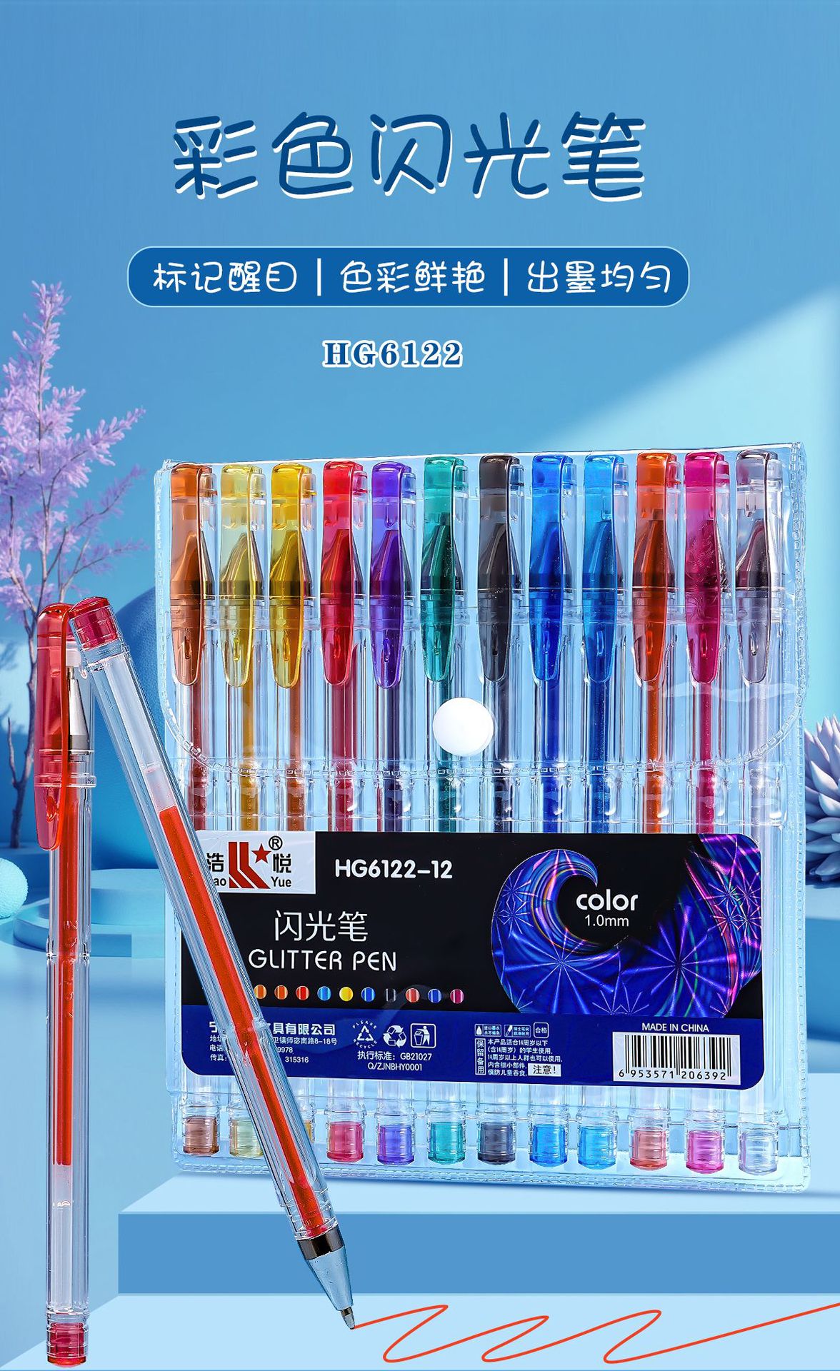 儿童闪光手账笔爆闪72色大容量闪光中性笔圣诞节高颜值绘画特效笔