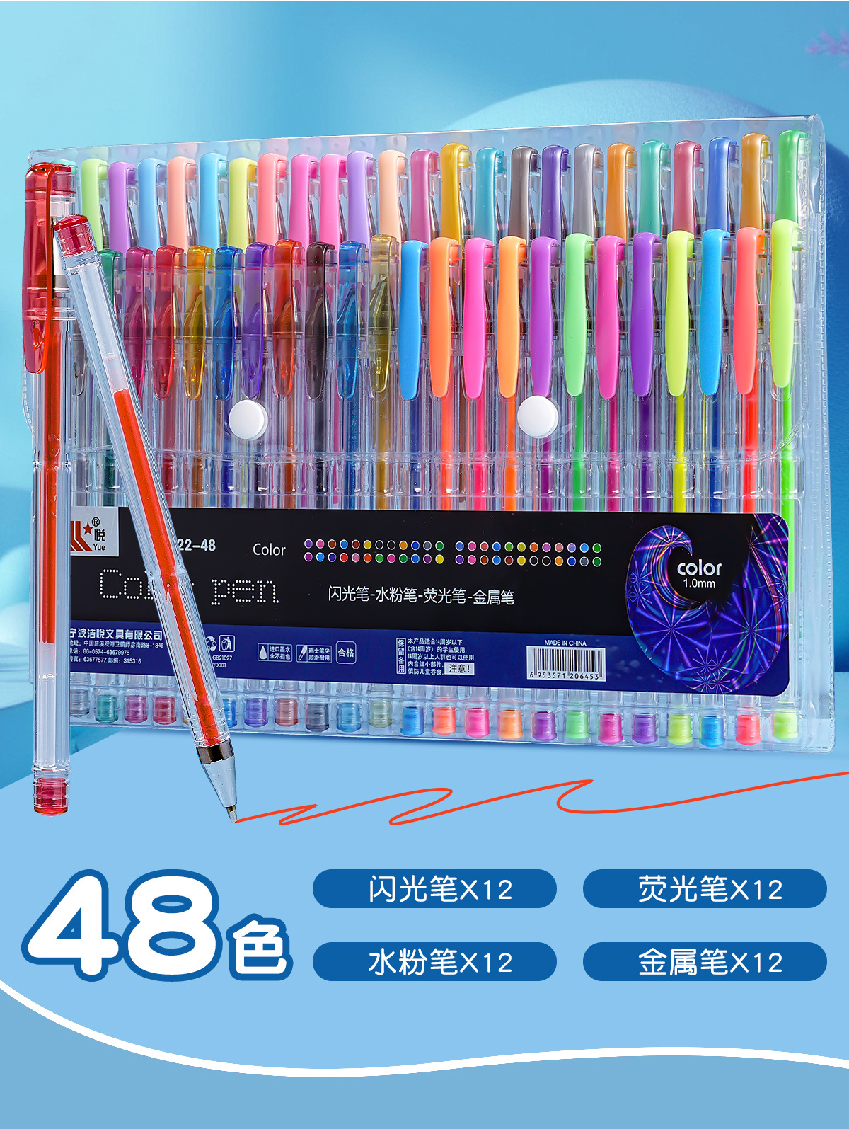 1.0絵画手帳マーカー蛍光ペン水彩蛍光メタリックカラーDIYカラーゲルペン48色セット
