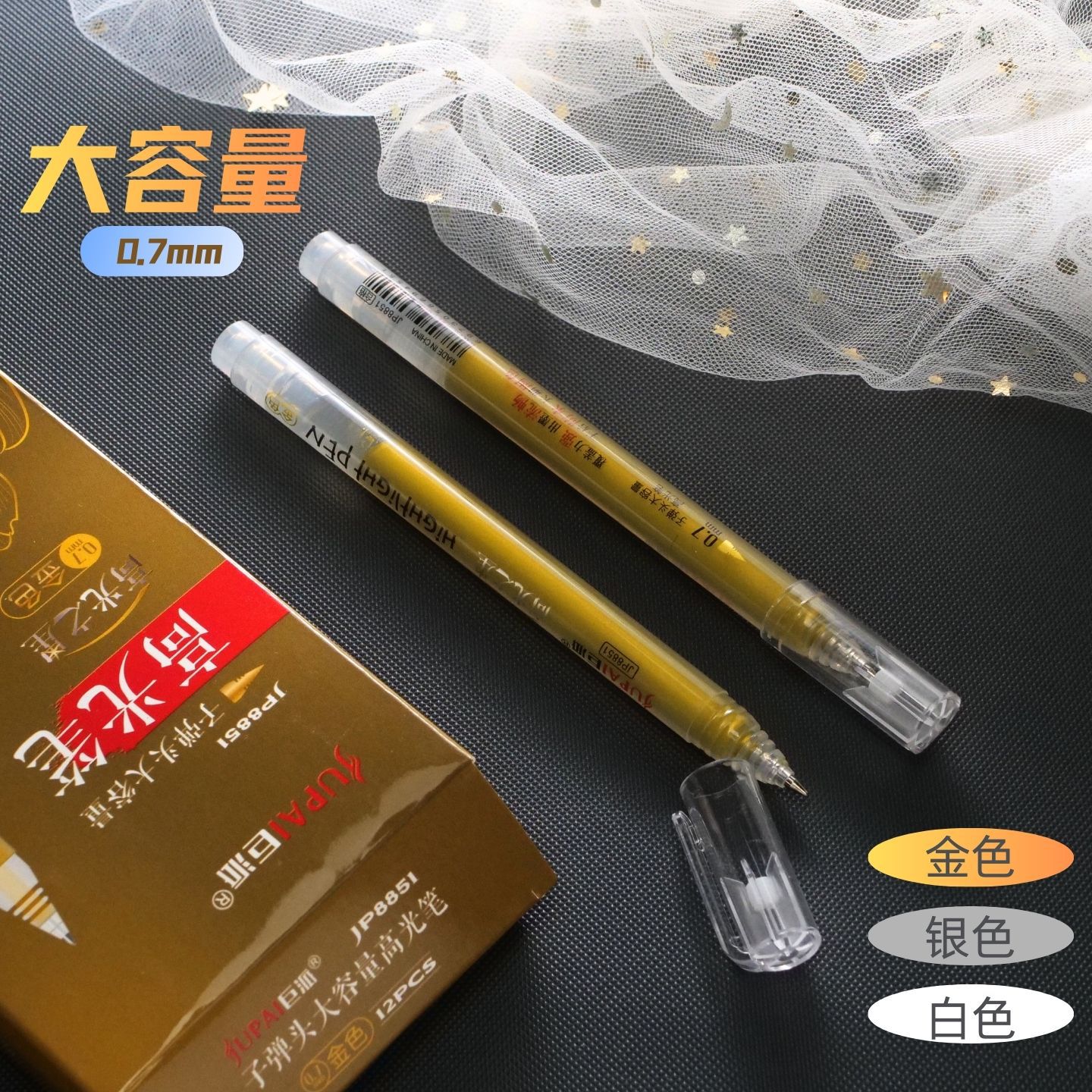 0.7mm美术高光白笔金笔抄经笔银笔高光笔手账白色金色银色提亮笔