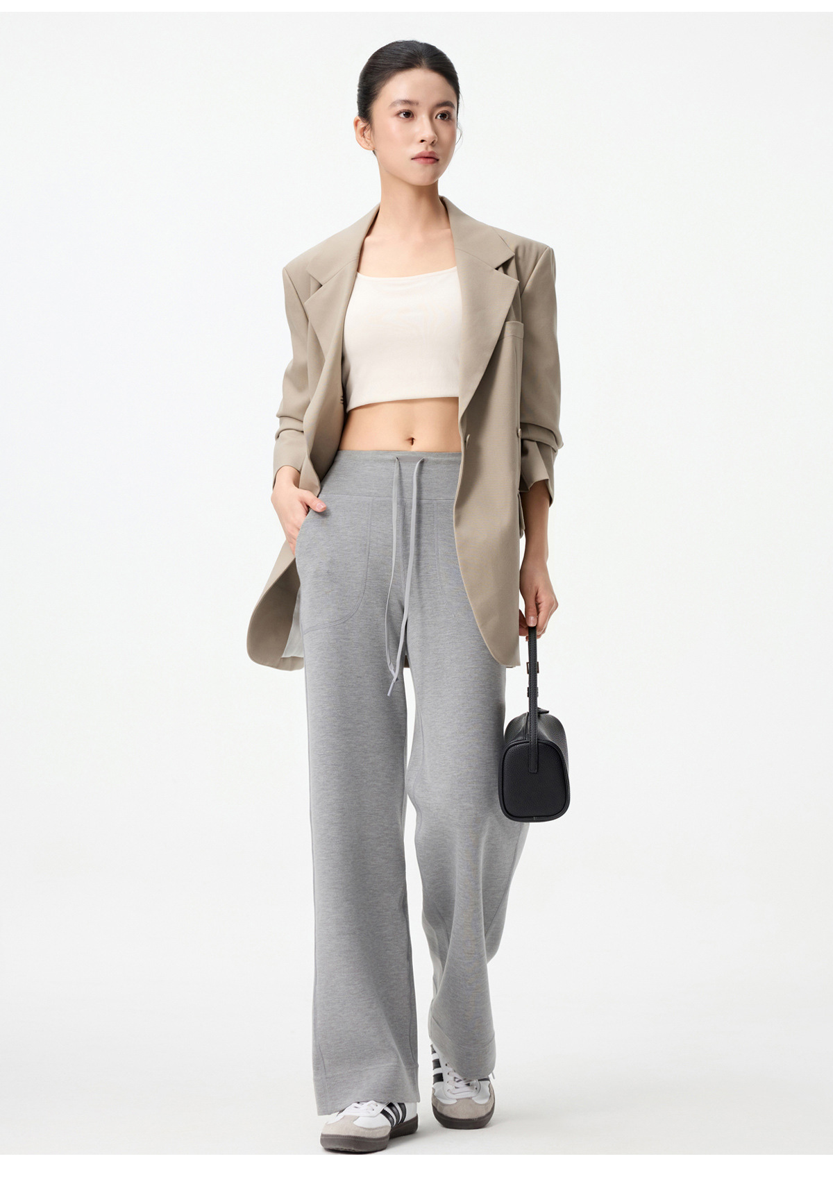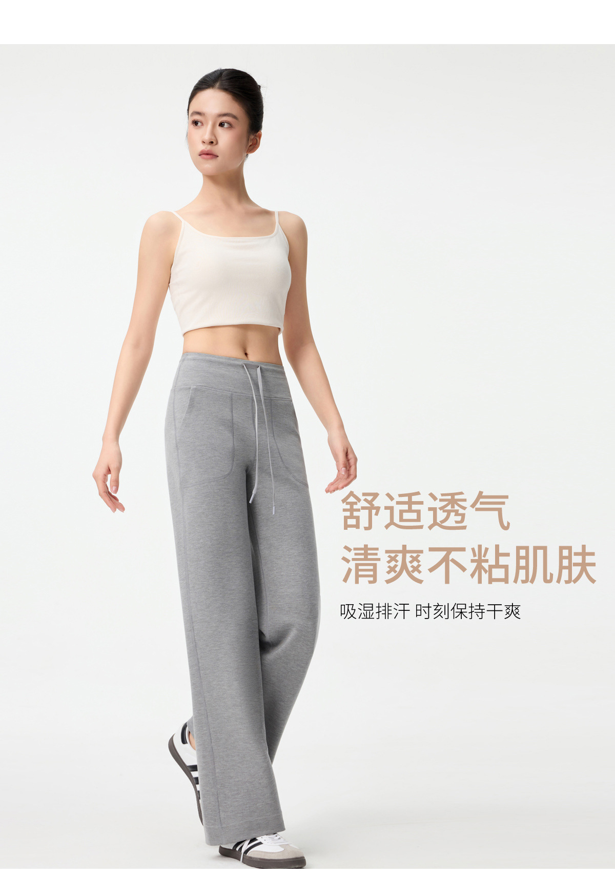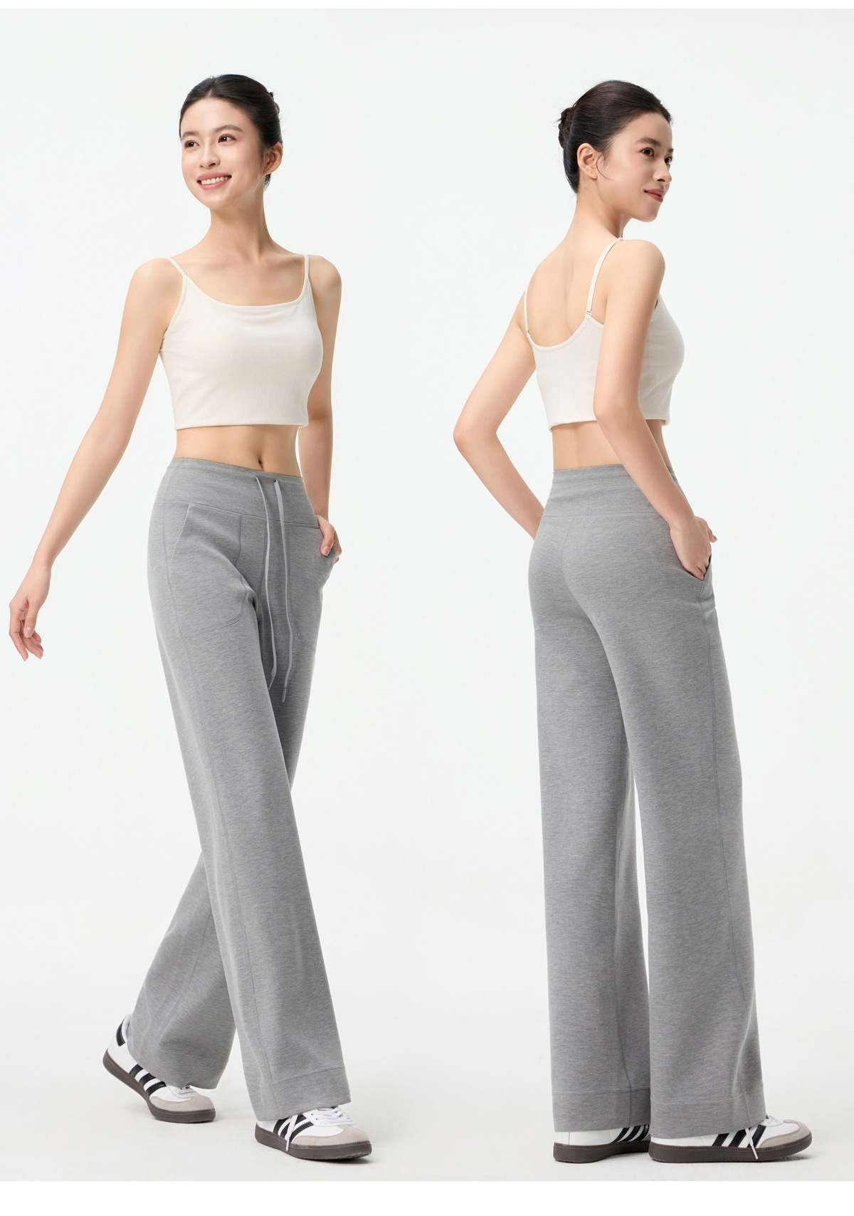 空气层直筒阔腿裤女秋冬新款简约时尚抽绳百搭休闲运动灰色卫裤子