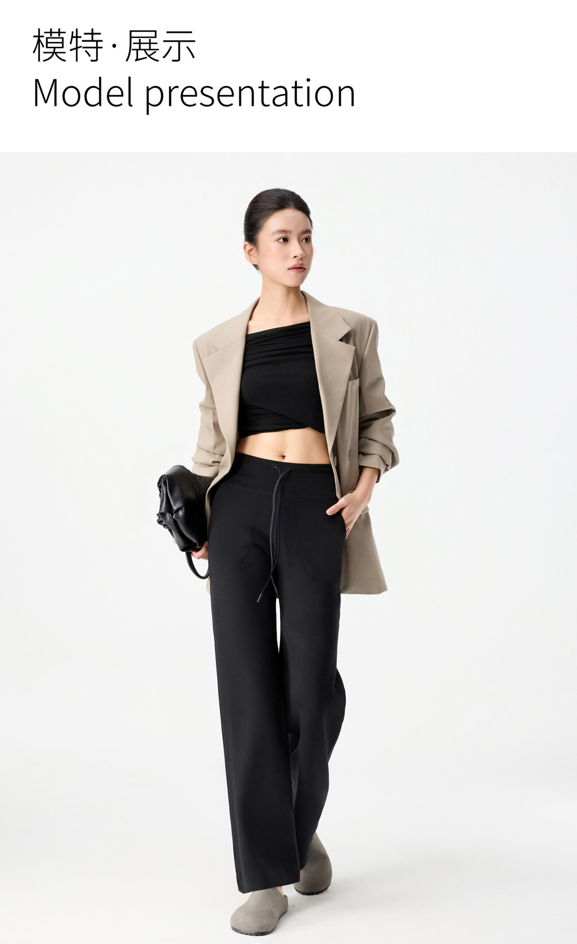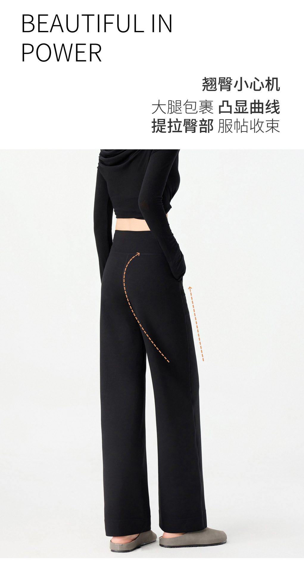秋冬新款舒适顺垂感直筒空气层阔腿休闲裤高腰显瘦藏肉通勤裤百搭
