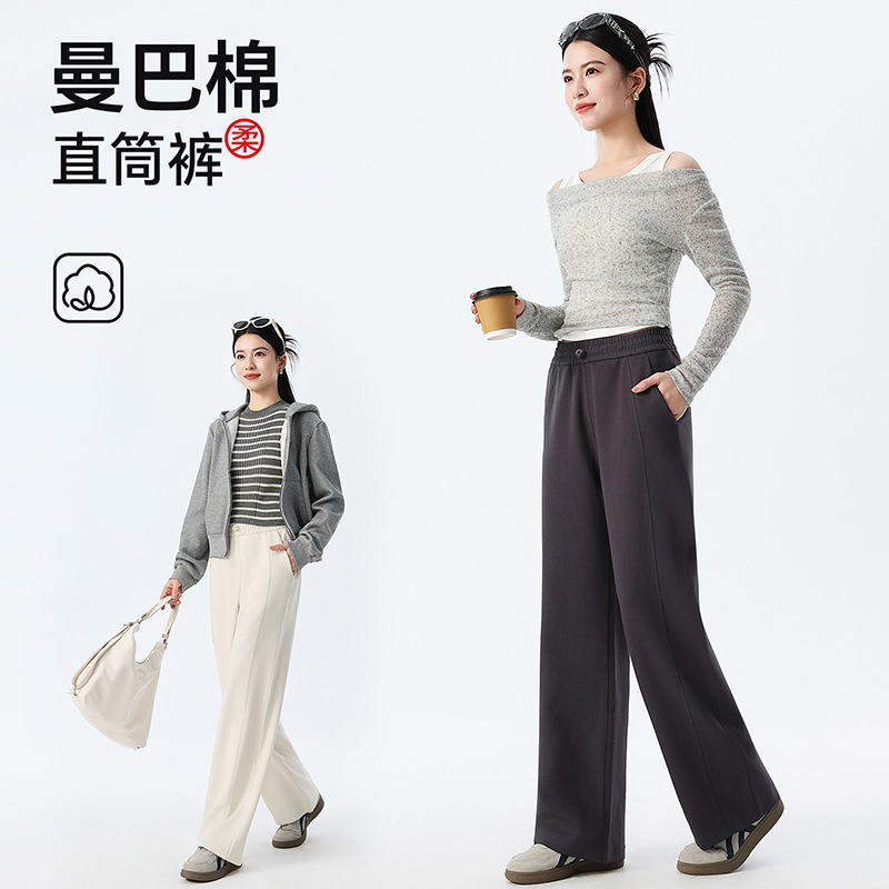 曼巴棉直筒休闲裤子女秋冬新款慵懒风潮牌高个子显瘦阔腿裤高级感