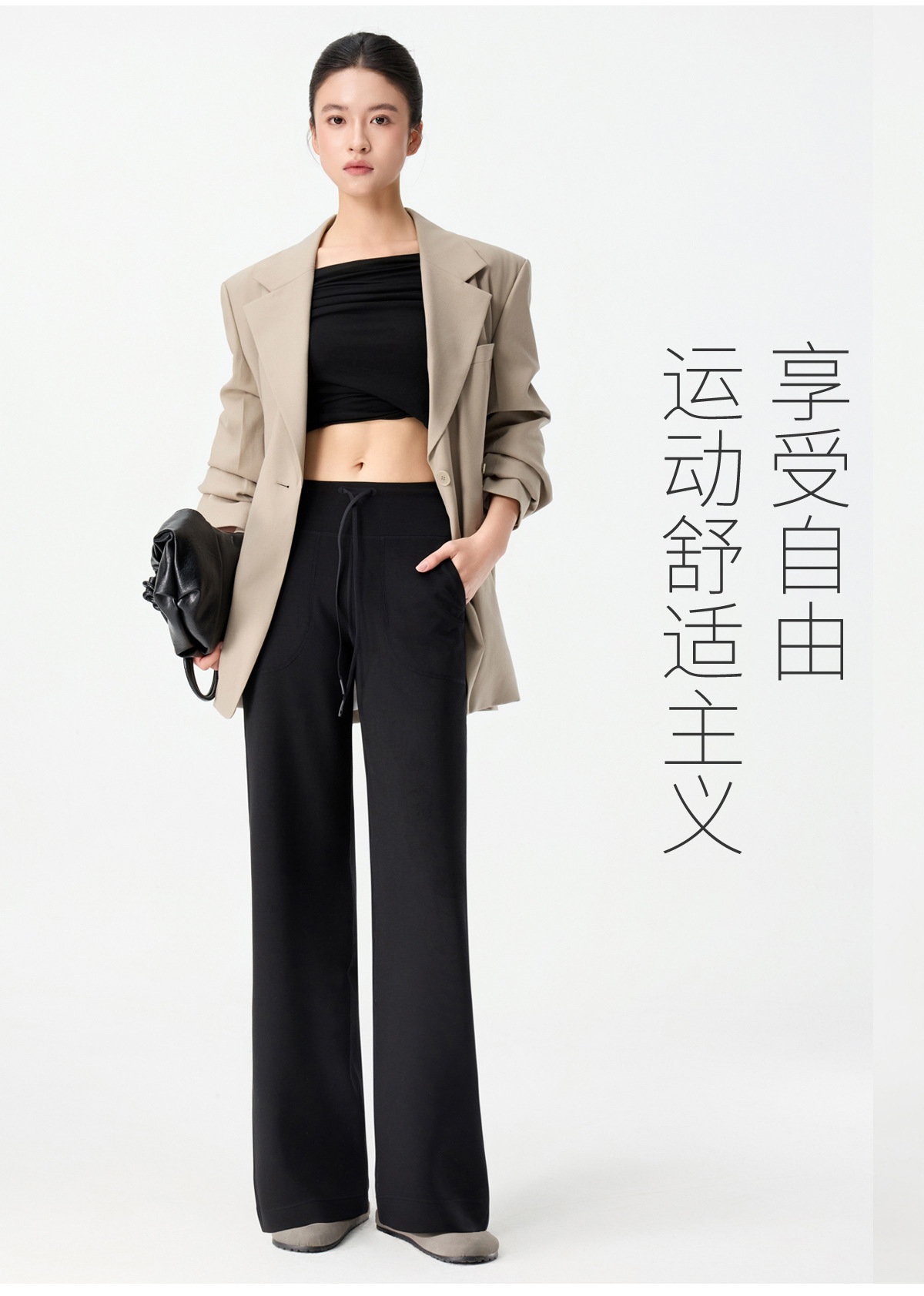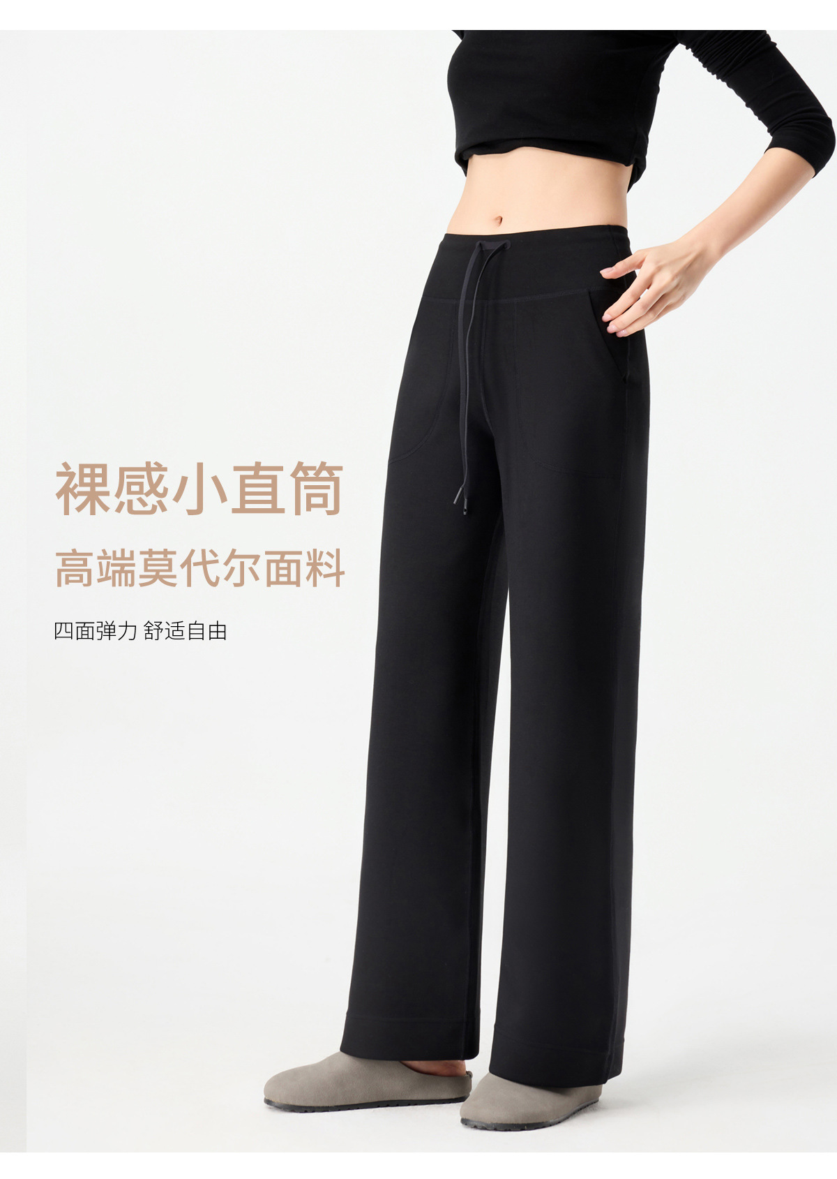 秋季新款休闲直筒裤女慵懒松弛感高腰显瘦垂顺软糯宽松外穿运动裤