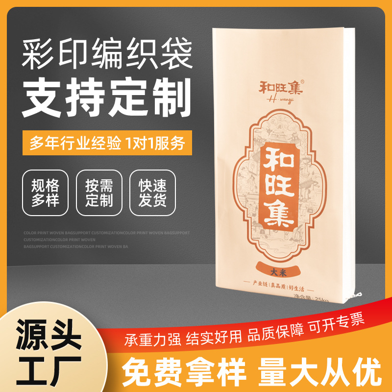 カスタマイズされたカラー印刷米織バッグ、防湿、増粘、透明な穀物、油、米、麺包装袋、ラミネートされた米ヘビ皮袋