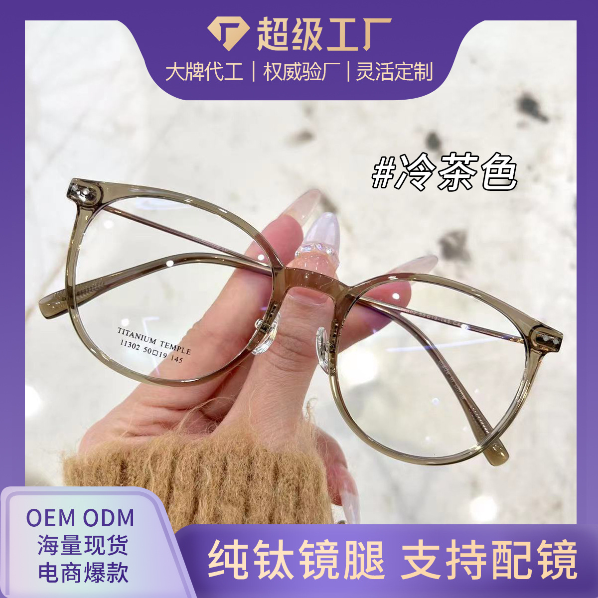 丹陽眼鏡冷茶色レトロ眼鏡フレーム女性は、ブルーレイ防止純チタン眼鏡フレーム11302卸売りを配合することができる