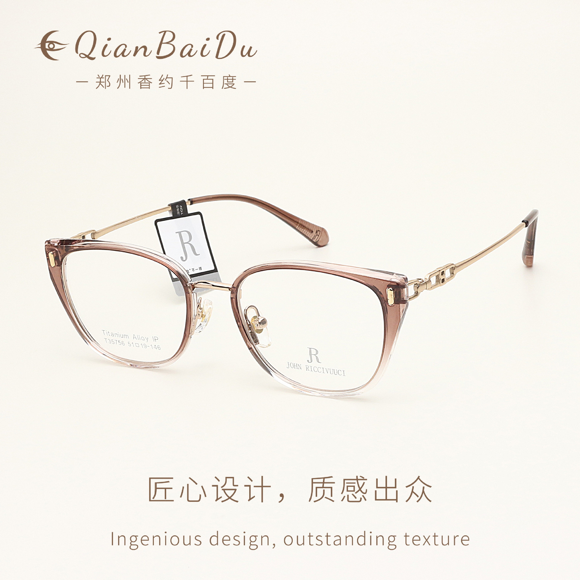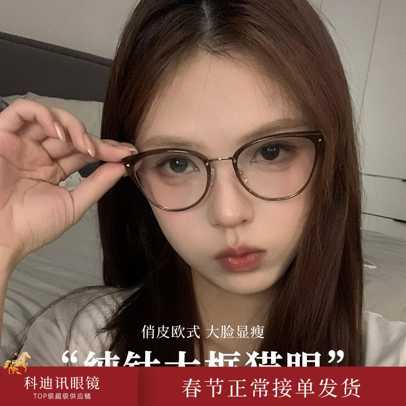 跨境35756超轻猫眼网红金胶半钛眼镜架女素颜神器ins风显瘦眼镜框