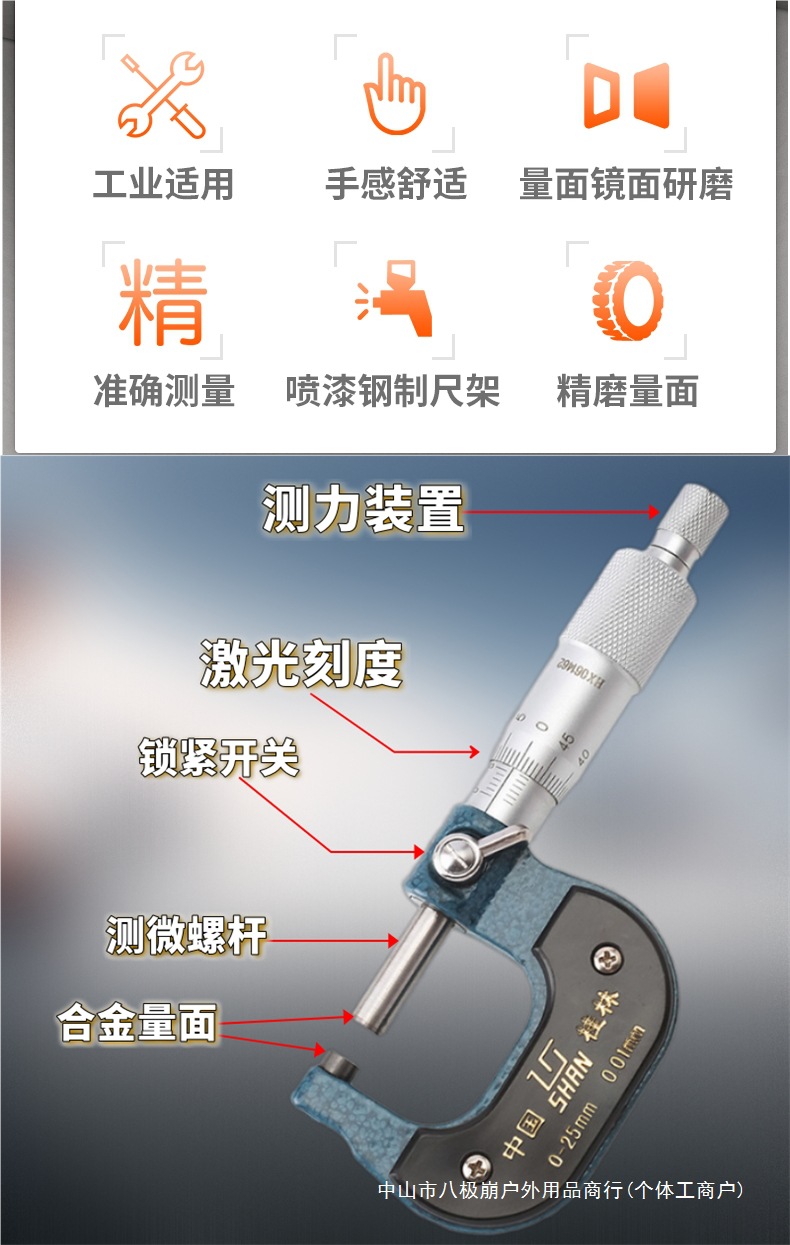 桂林ギウアン外径マイクロメーター 0-25mm100-300m 工業用高精度 0.01 スパイラルマイクロメーター 8 極