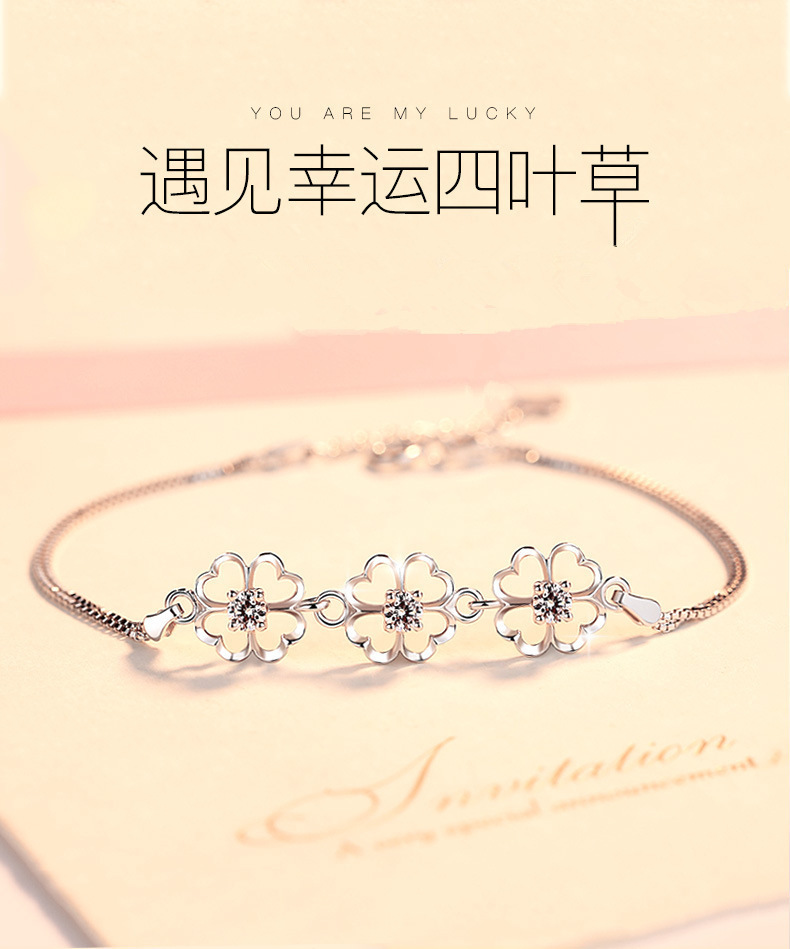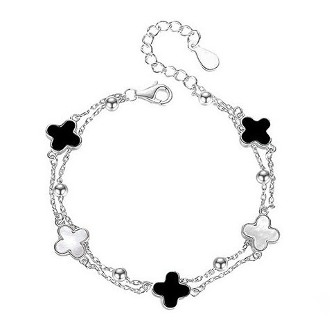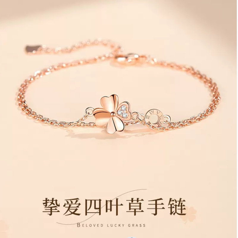 愛する四つ葉のクローバー二層ブレスレット女性用模造 925 スターリングシルバー ins ニッチライト高級誕生日バレンタインデーギフトガールフレンド