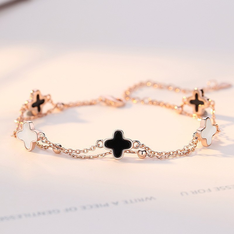 ライトラグジュアリーハイエンド愛の四つ葉のクローバージルコンブレスレット女性の四つ葉のクローバー二層ブレスレットニッチデザインハンドジュエリー
