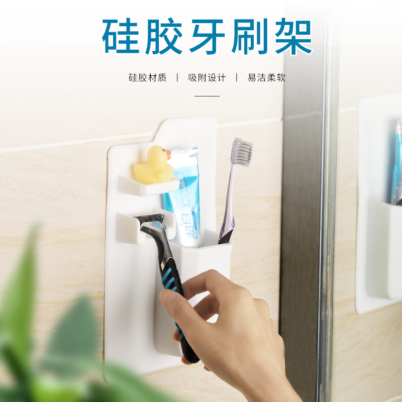 シリコン製の穴あけ不要歯ブラシホルダー、浴室収納ボックス、壁掛け式歯ブラシ・歯磨き粉・カミソリホルダー、シリコン歯ブラシホルダー