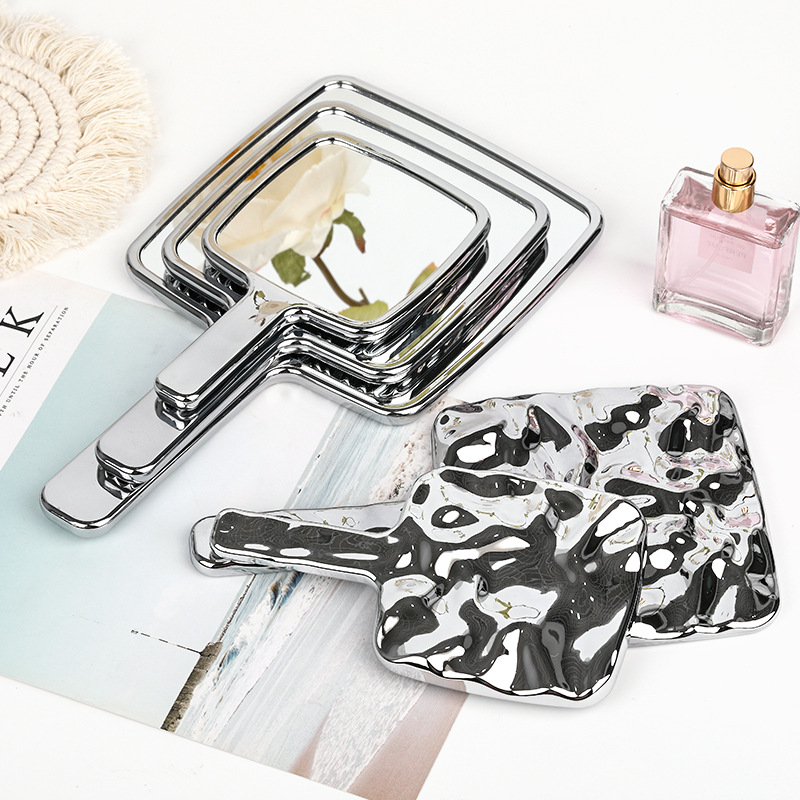 ネットセレブ高見えポータブル水波紋化粧鏡手持ち化粧電気メッキ高精細ドレッシングスタイル片面鏡在庫あり