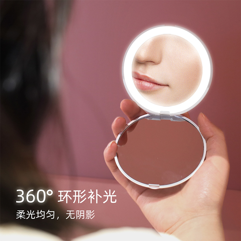ポータブル LED フリップアップ化粧鏡ミニミラー学生小さな丸いミラーメイクアップ片面旅行用