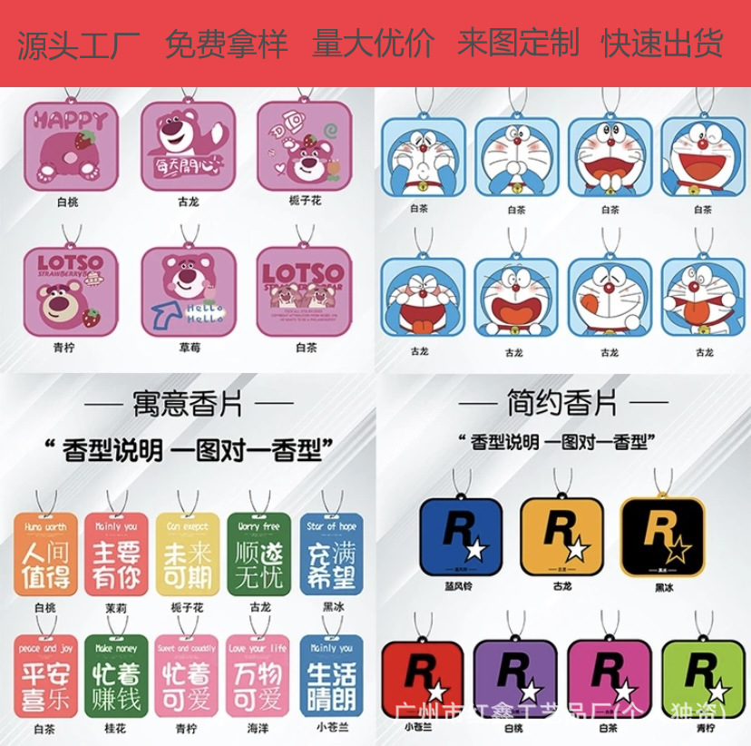 メーカーがカスタマイズした車載香片ストラップ工場卸売りは、震え宝多新製品の爆発的な持続的な淡香薫片を提供している