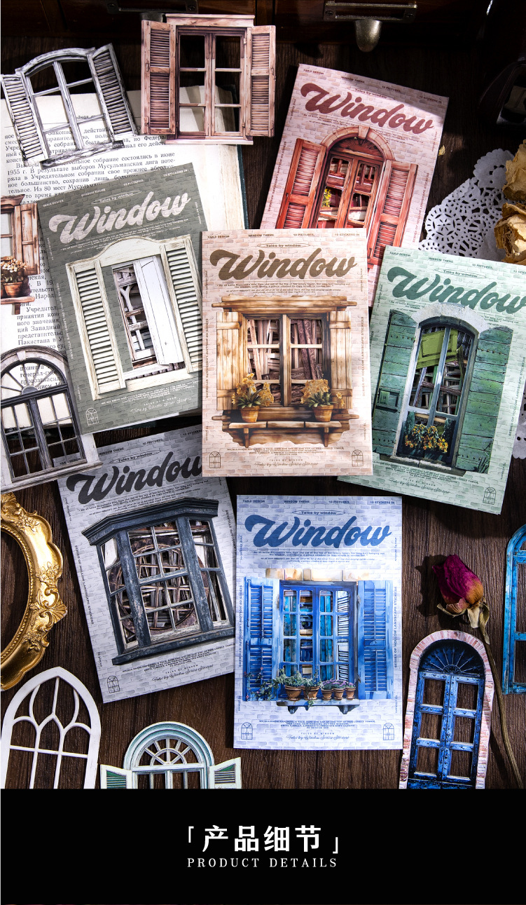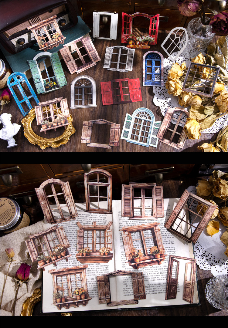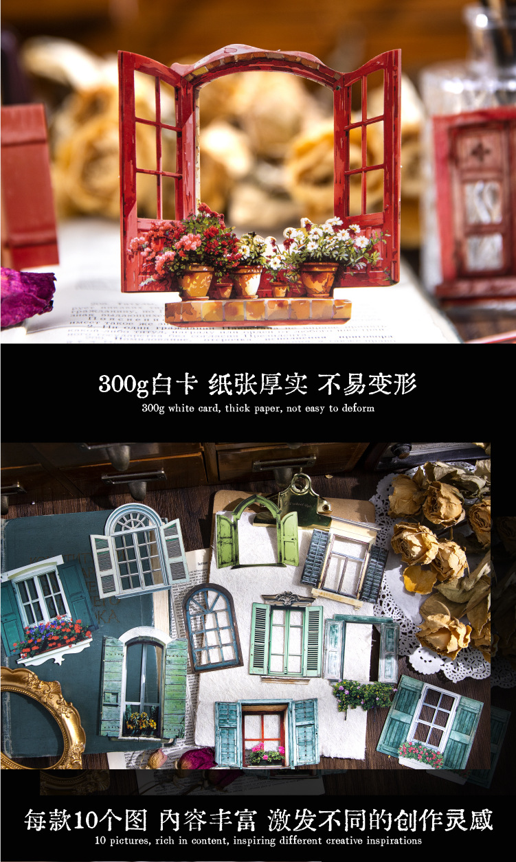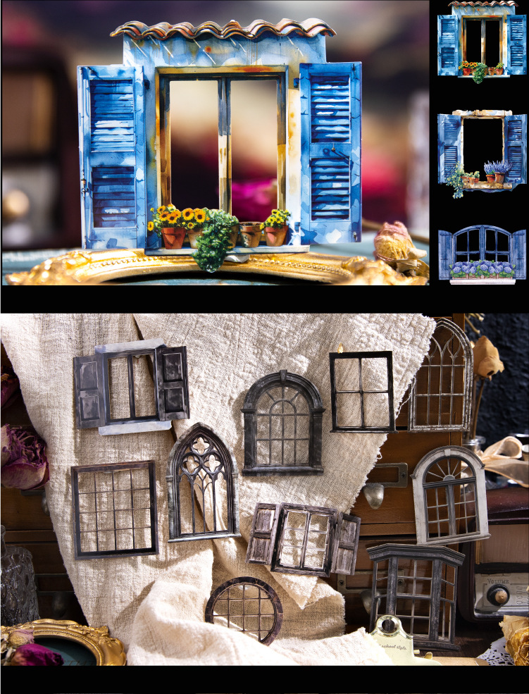 复古窗户素材纸造景装饰拼贴画diy手账咕卡镂空打底拼贴画手帐贴