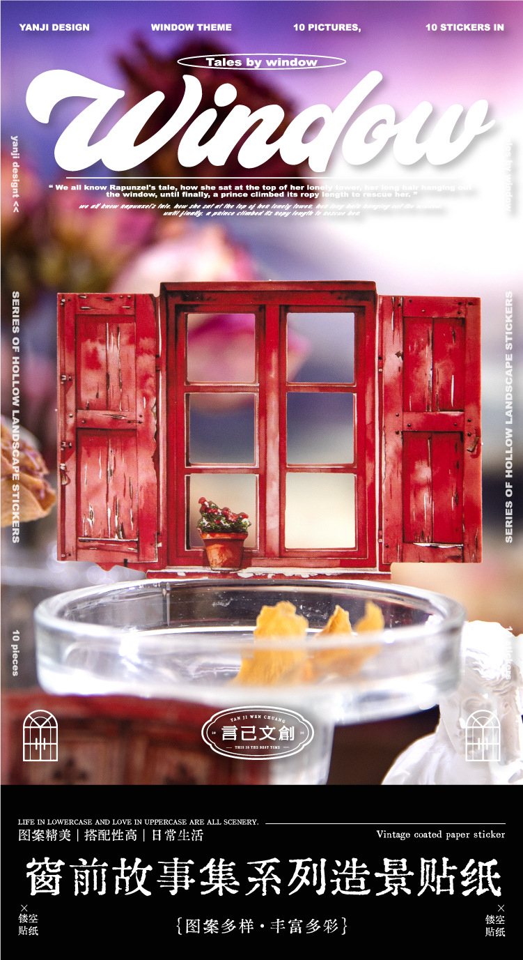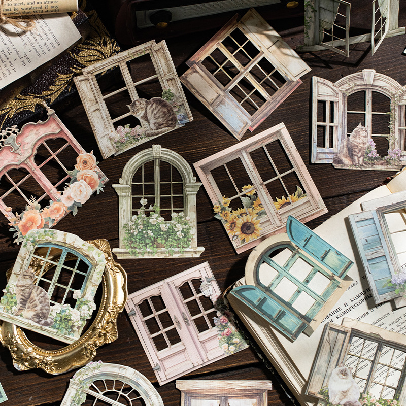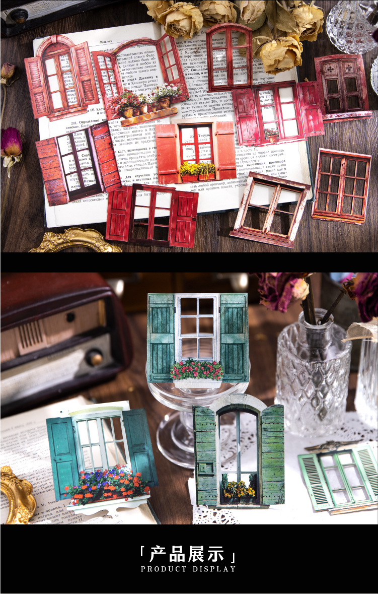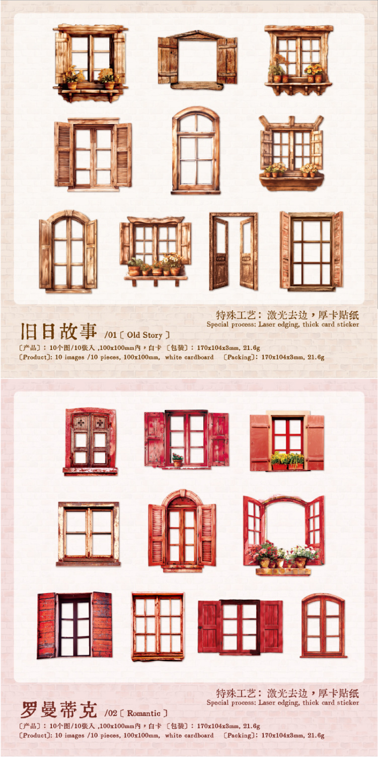 語閑古復古タイルカード窓の物語シリーズ百合素材手帳diyシーン造景装飾ステッカー