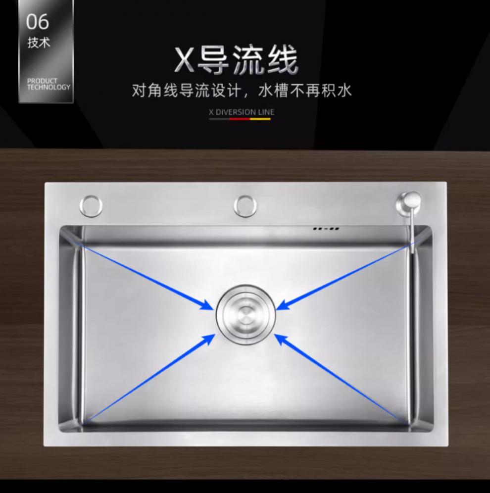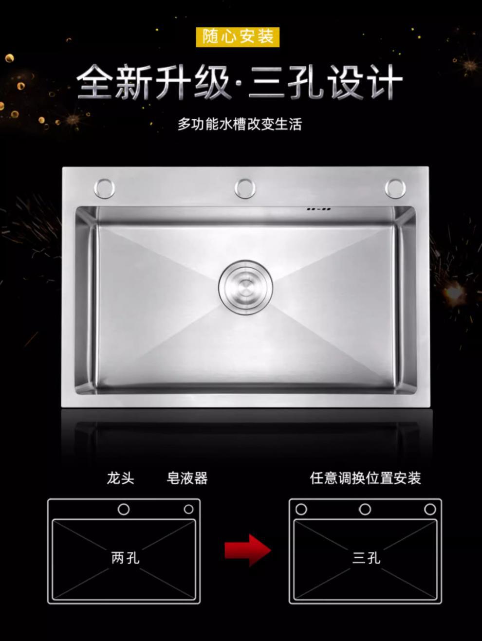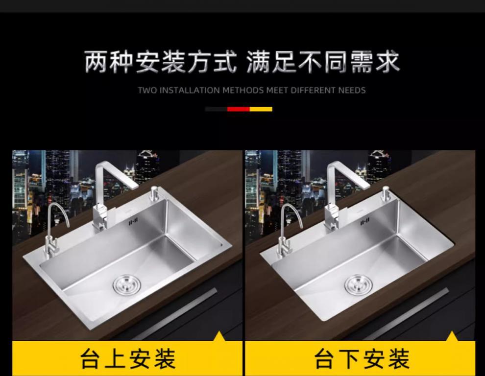 不锈钢水槽304洗菜加厚纳米单槽手工家用拉丝台下盆厨房洗碗