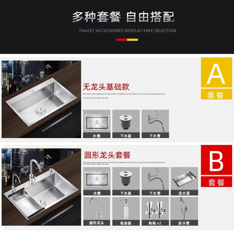 厚みのある 304 ステンレス鋼の水洗いシンク、キッチン手作り家庭用大型シンク、食器洗いシンク、サプライチェーン工場