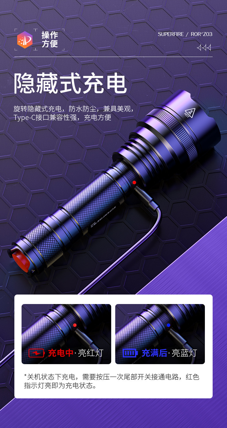 SUPERFIRE神火跨境LED强光充电手电C8-L户外家用强光手电筒批发