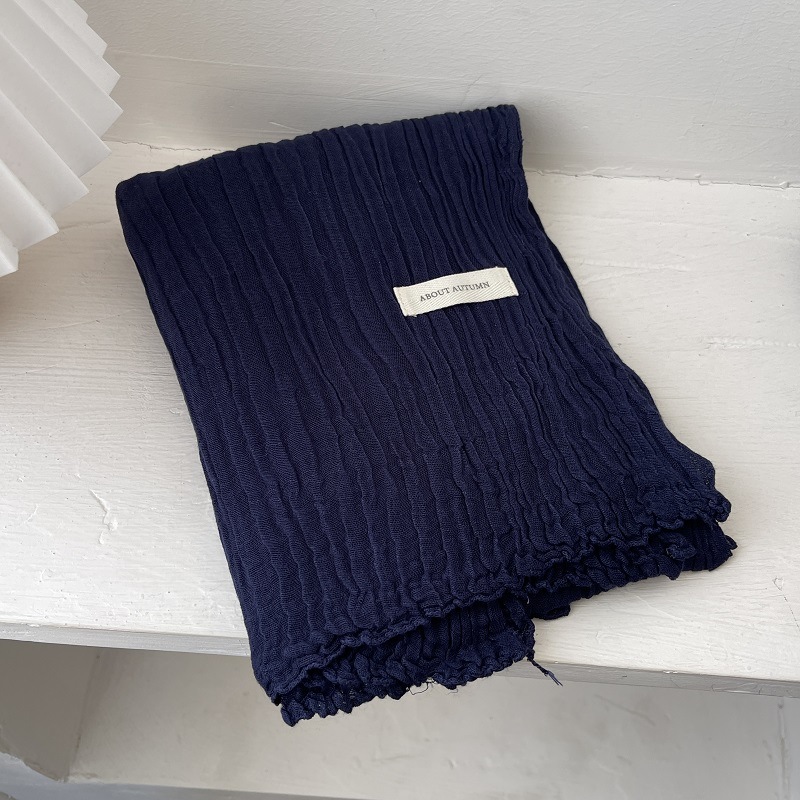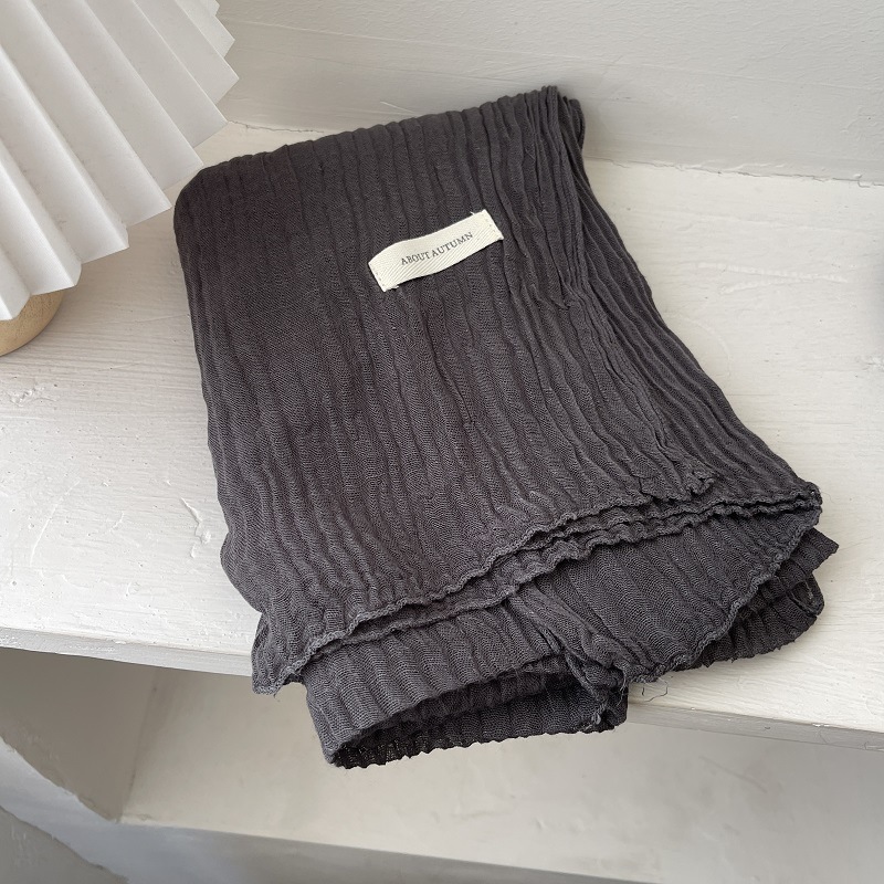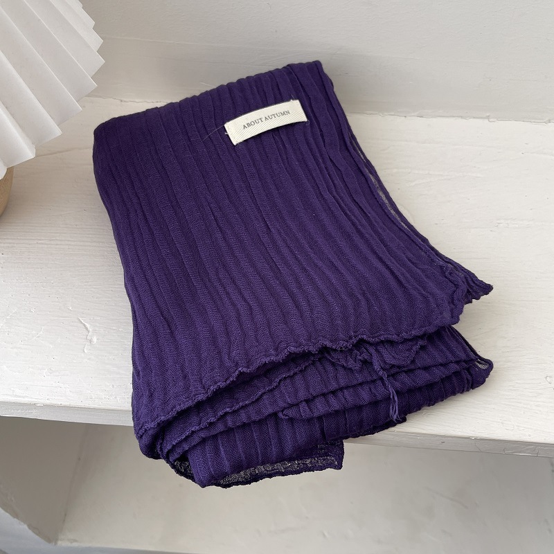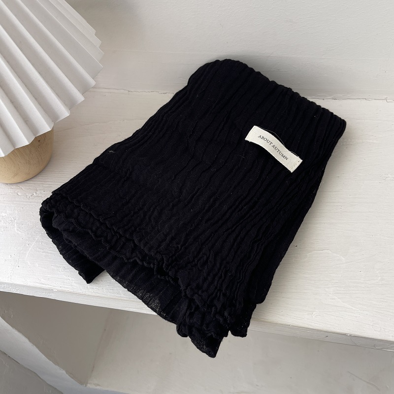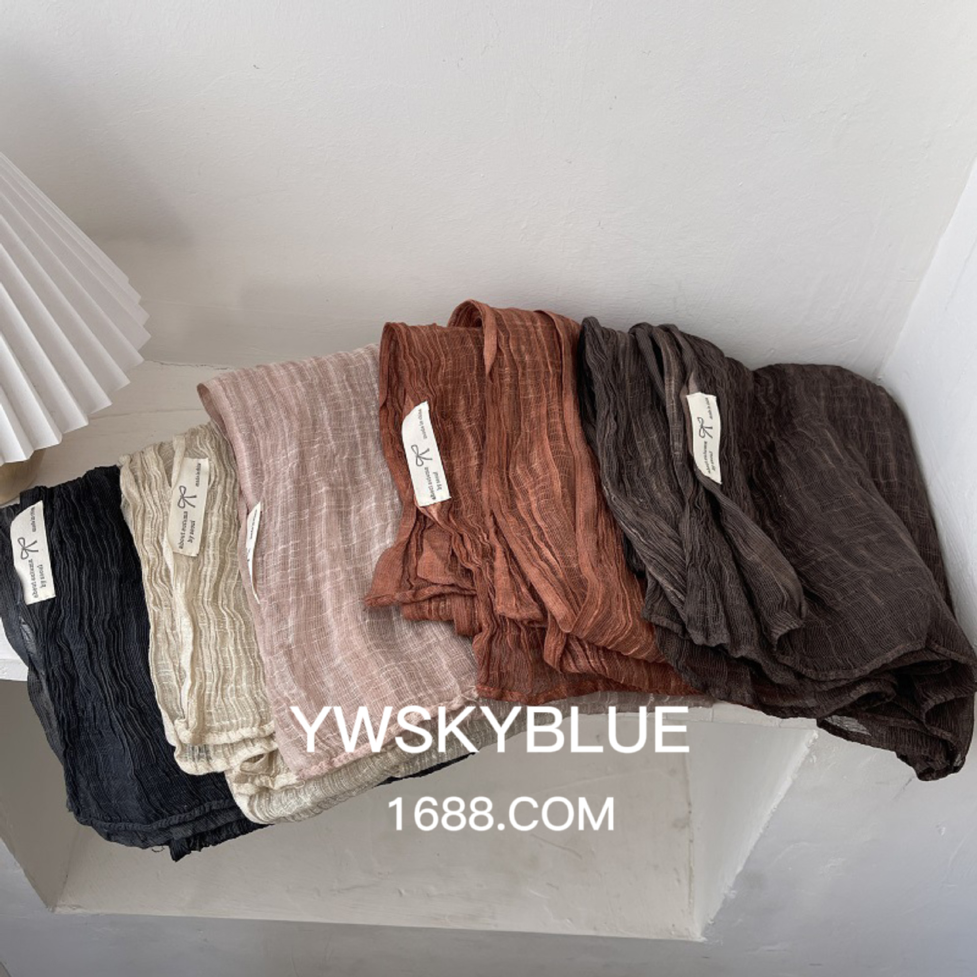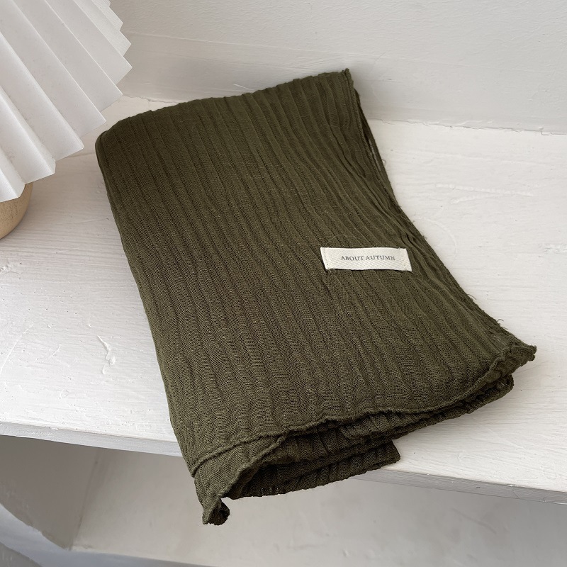 清冷感日系复古文艺纯色褶皱棉麻披肩春秋质感纯棉围巾女护颈围脖