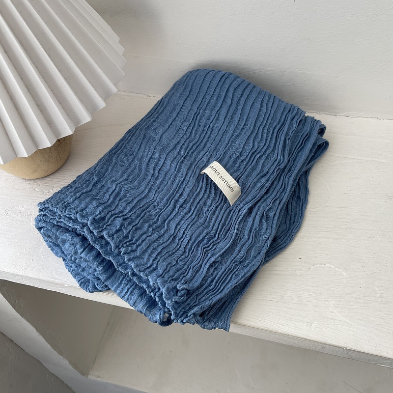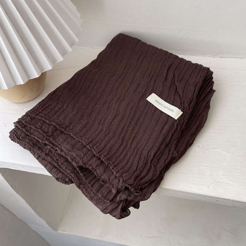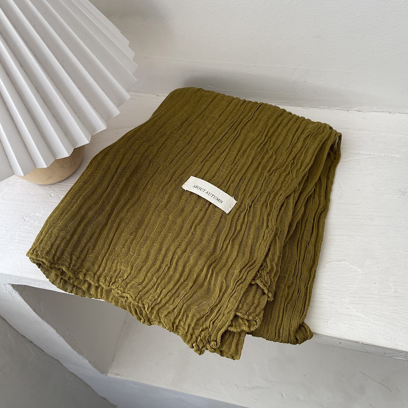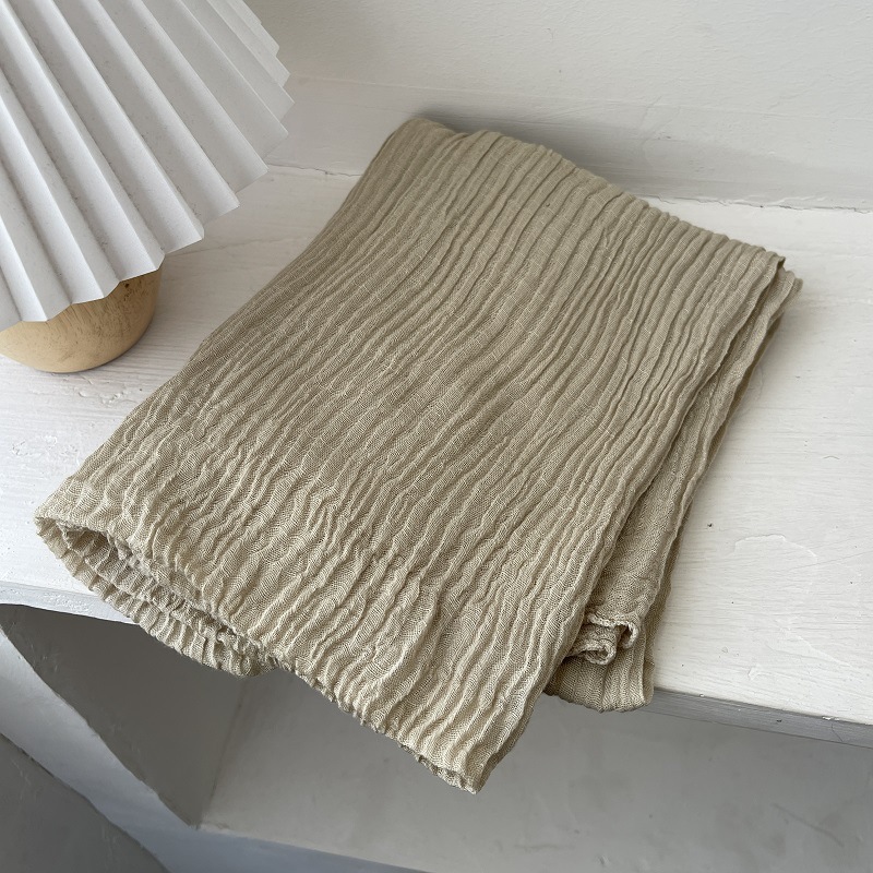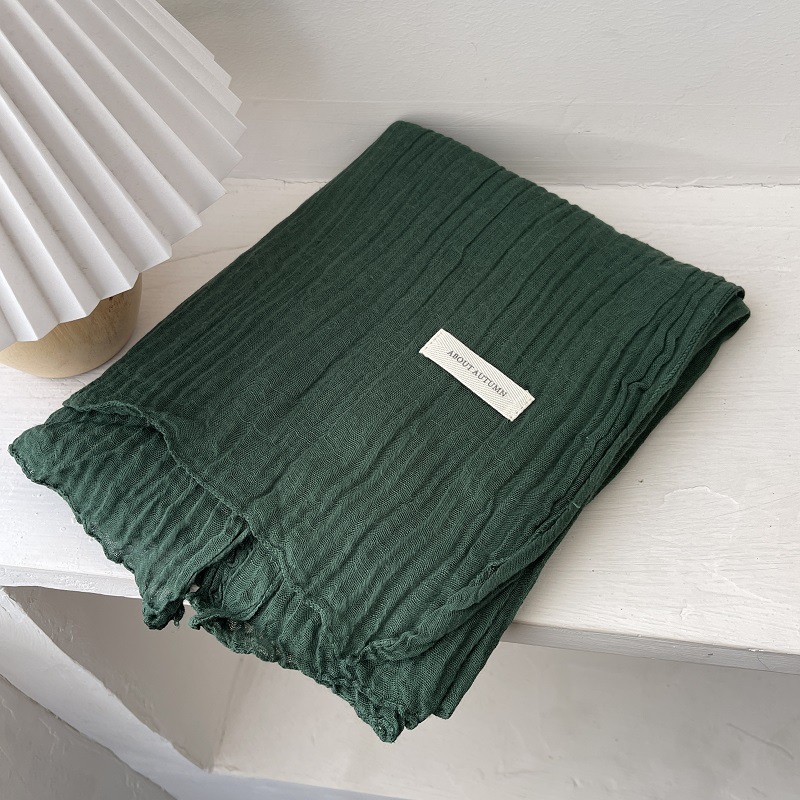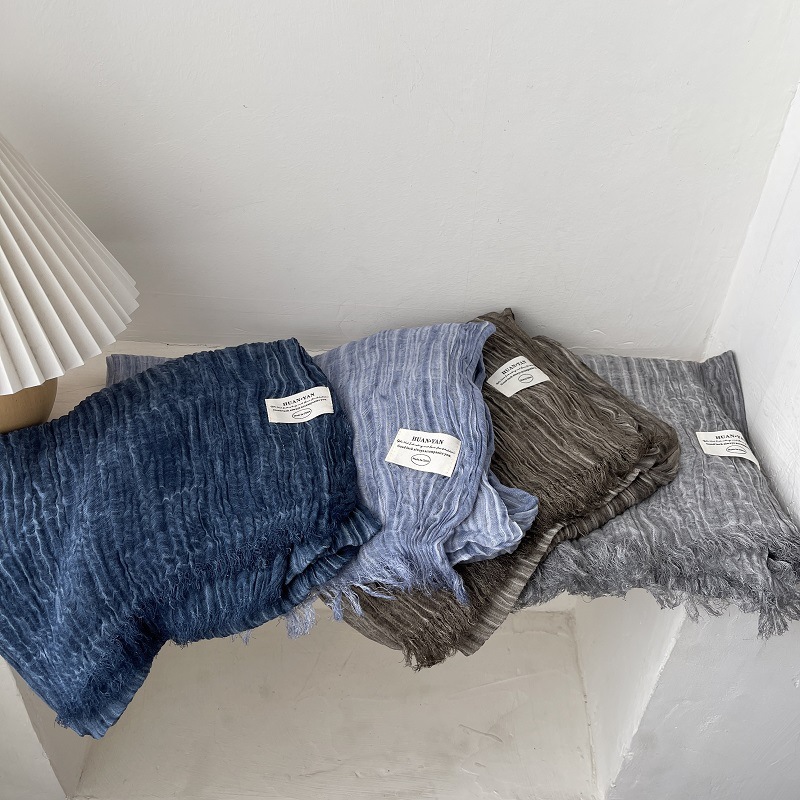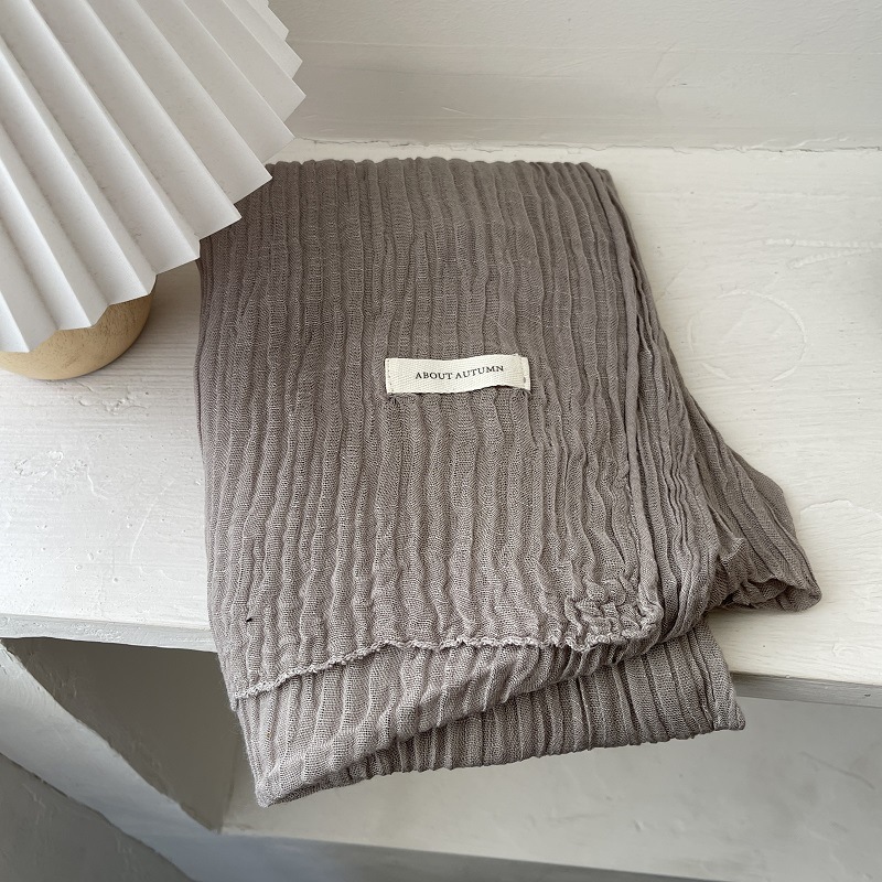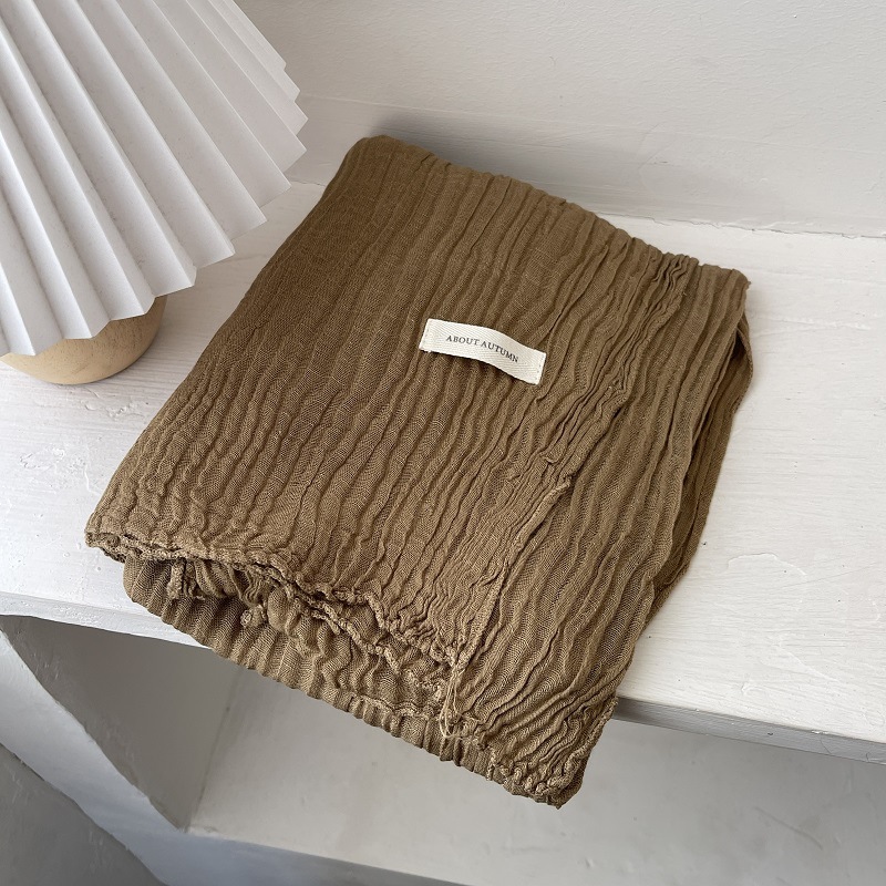 清冷感日系复古文艺纯色褶皱棉麻披肩春秋质感纯棉围巾女护颈围脖