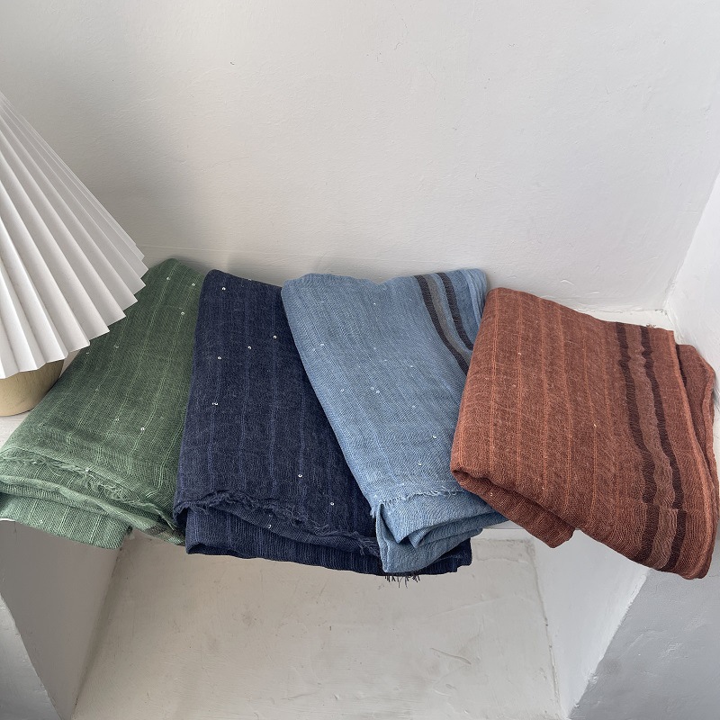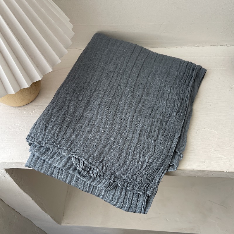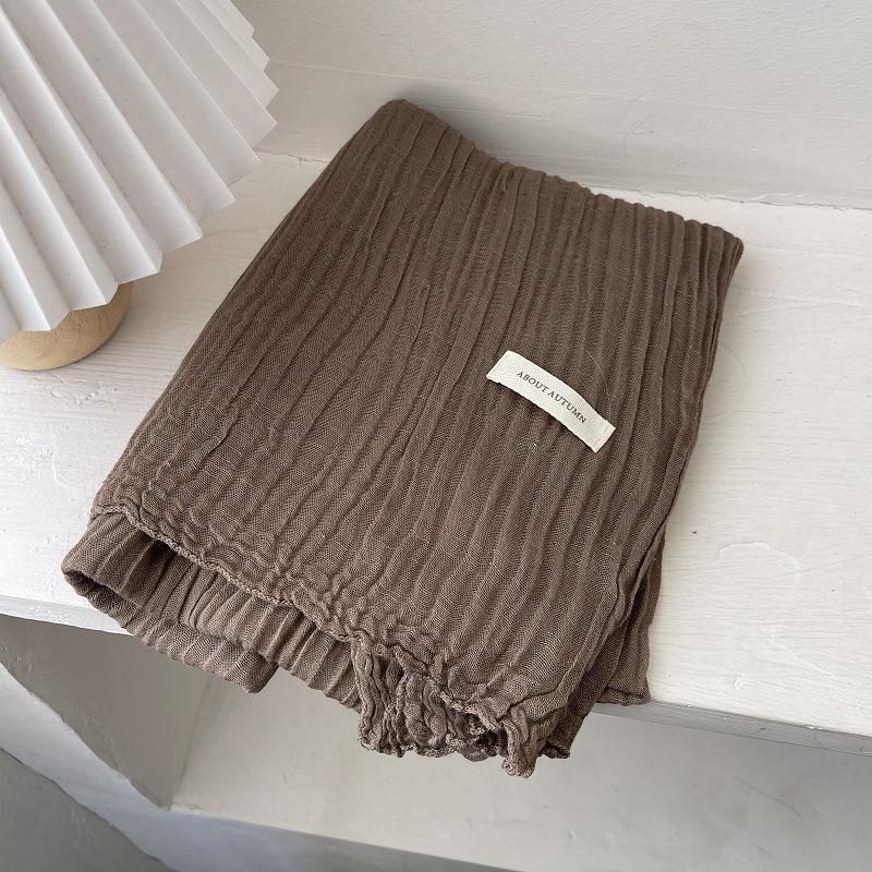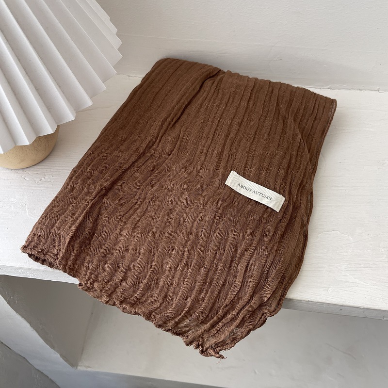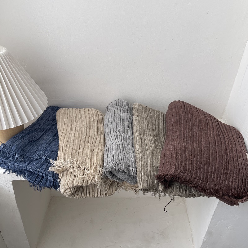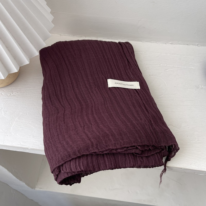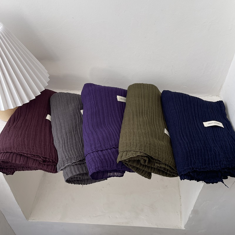 清冷感日系复古文艺纯色褶皱棉麻披肩春秋质感纯棉围巾女护颈围脖