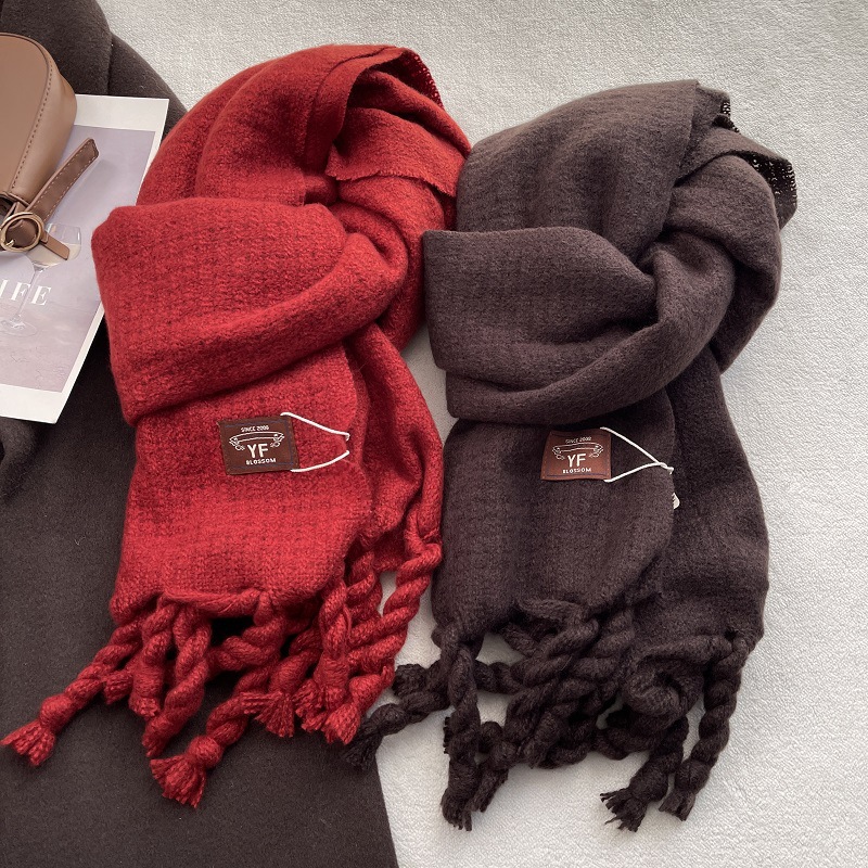 高級感のある大流蘇純色のマフラー女性は冬にカシミヤをまねて保温学生のマントを厚くします。
