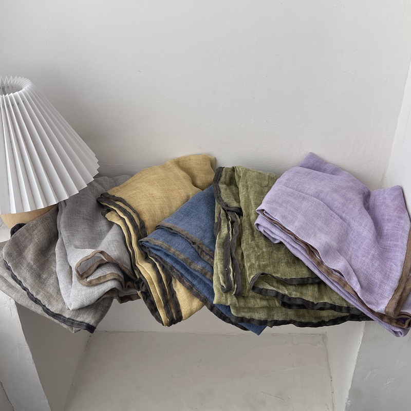 日系文芸純色包辺綿麻マフラー女2025春秋の薄いファッションには純色のロングストールがついている