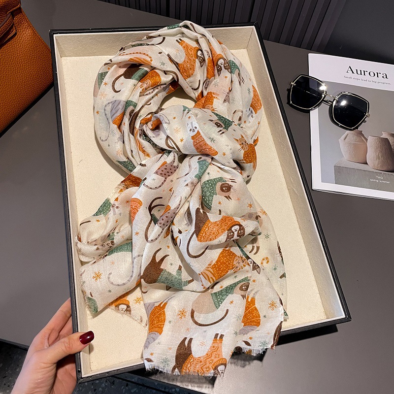 工場販売対外貿易クロスボーダー生放送長尾猫楽園プリントシルケット綿長巾春夏日焼け止め旅行マフラー