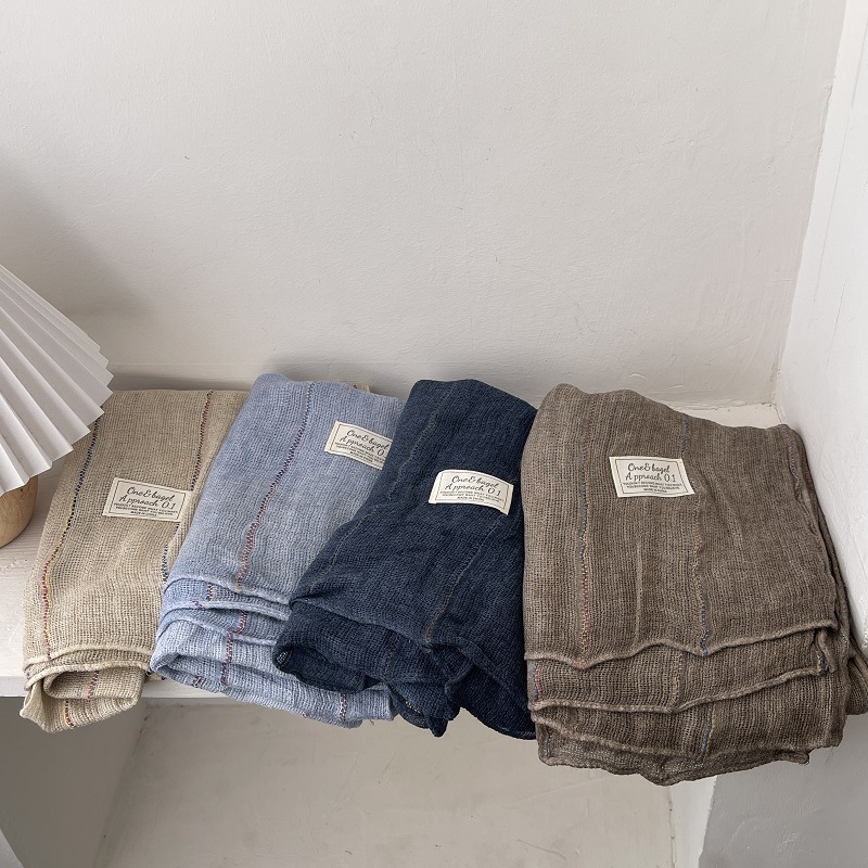 新しい日本のレトロな文学スタイルのストライプのローエッジコットンとリネンのスカーフ、女性用、春と秋の薄いファッショナブルで多用途なショール
