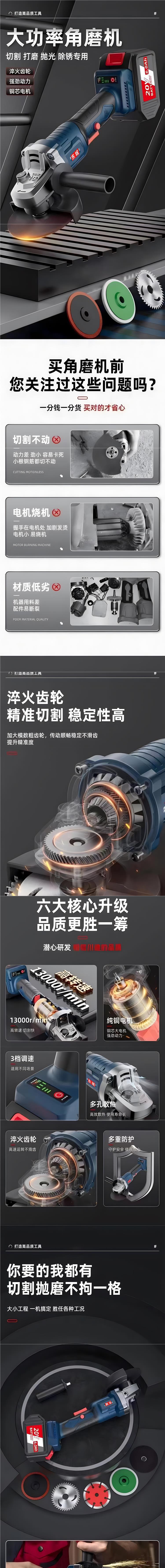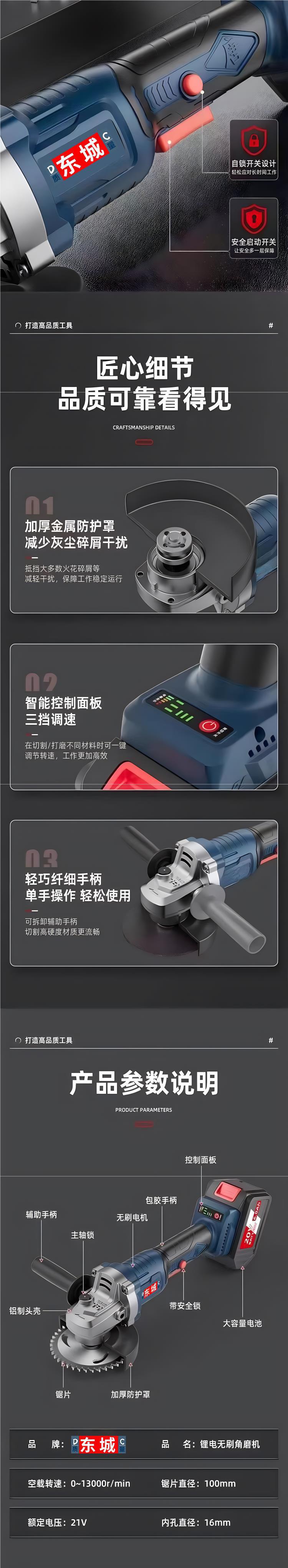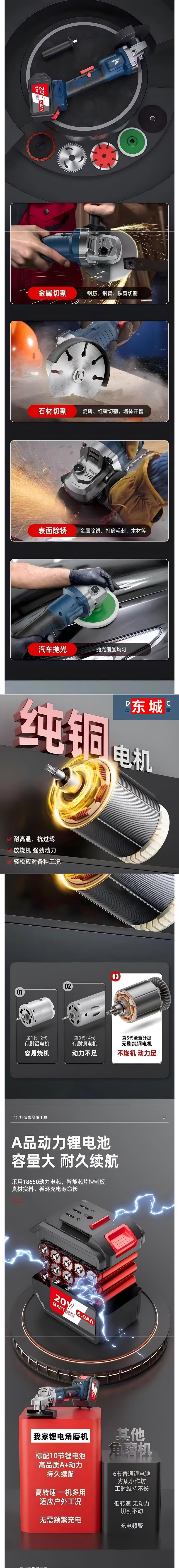 Dongcheng ハイパワーブラシレス充電式アングルグラインダーリチウム電池充電式切断機多機能研磨機グラインダー
