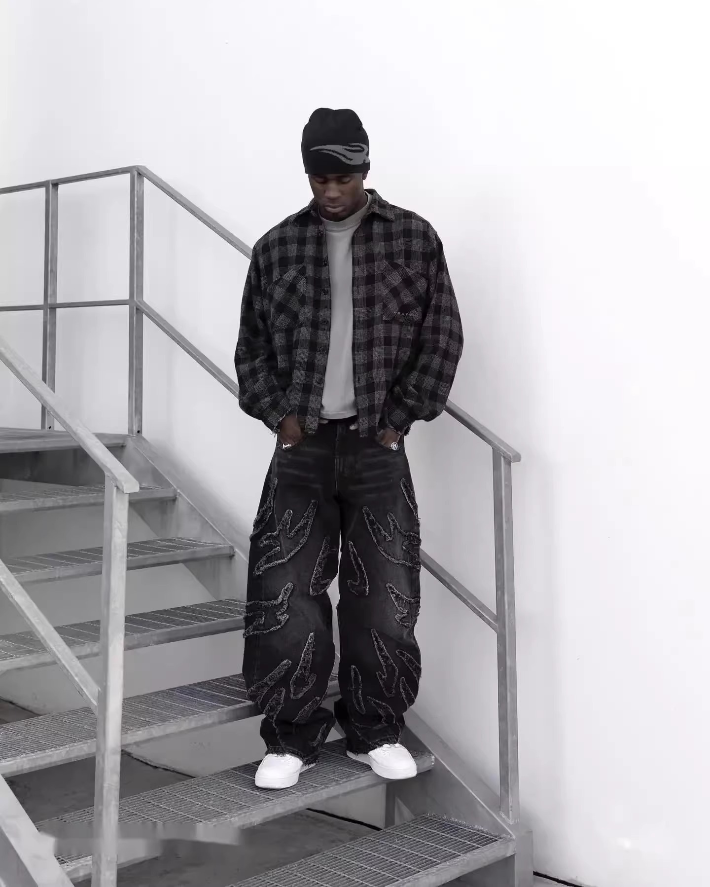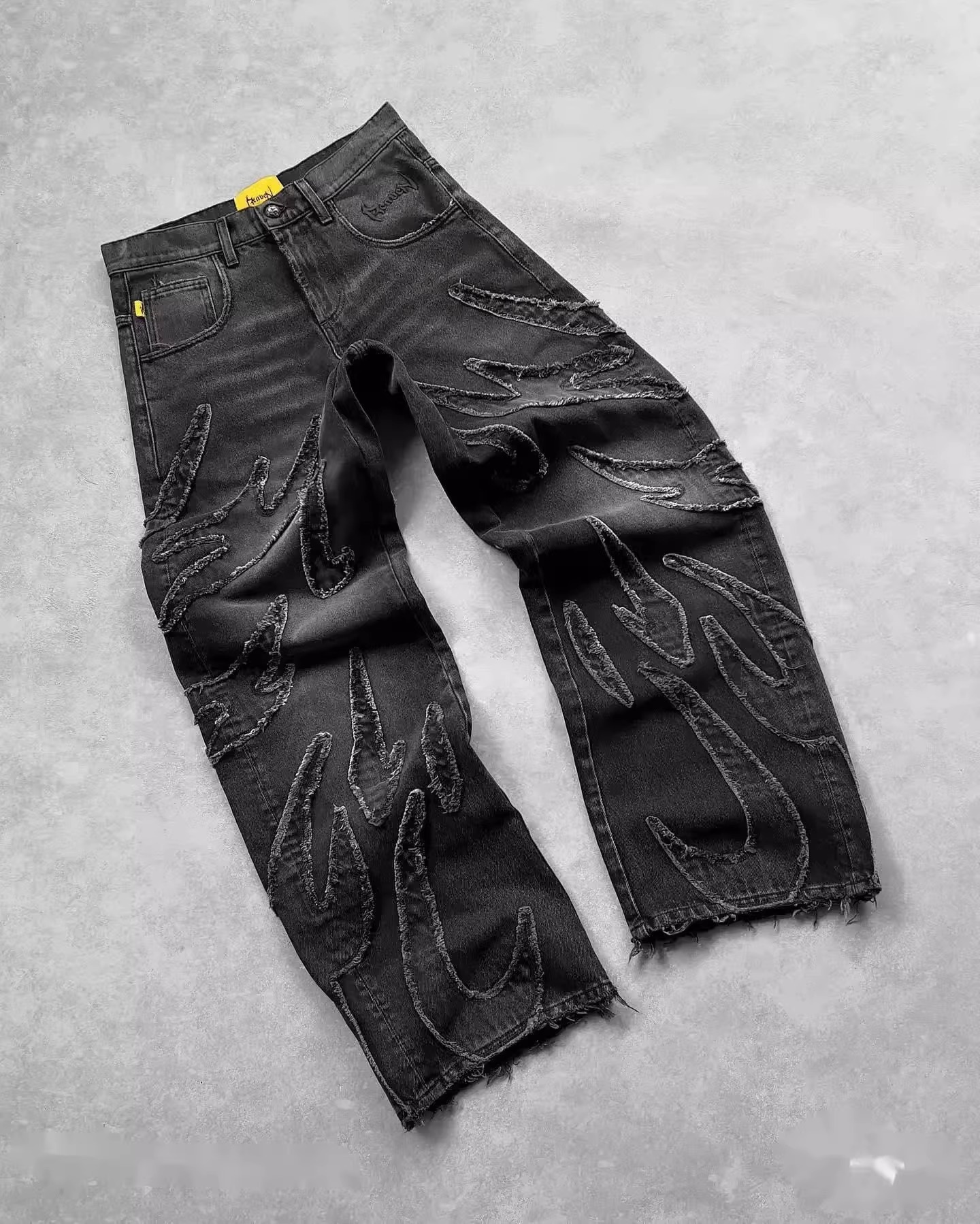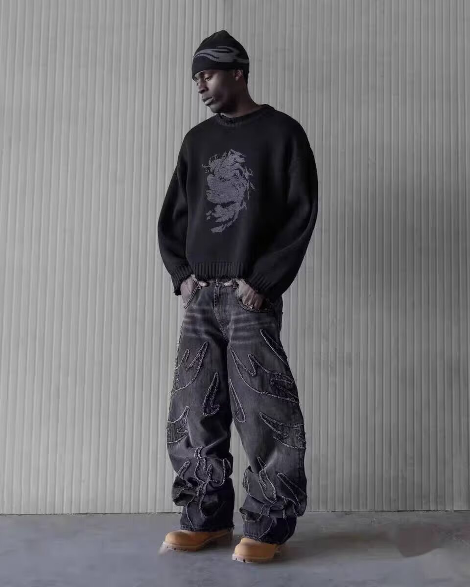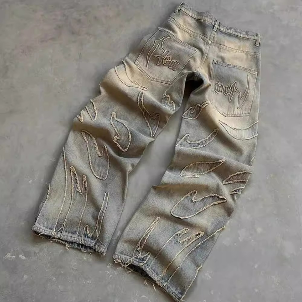 ヨーロッパとアメリカンスタイルのストリートグラデーションパンツアメリカンスタイルのリップドジーンズメンズデザインニッチストレートパンツ