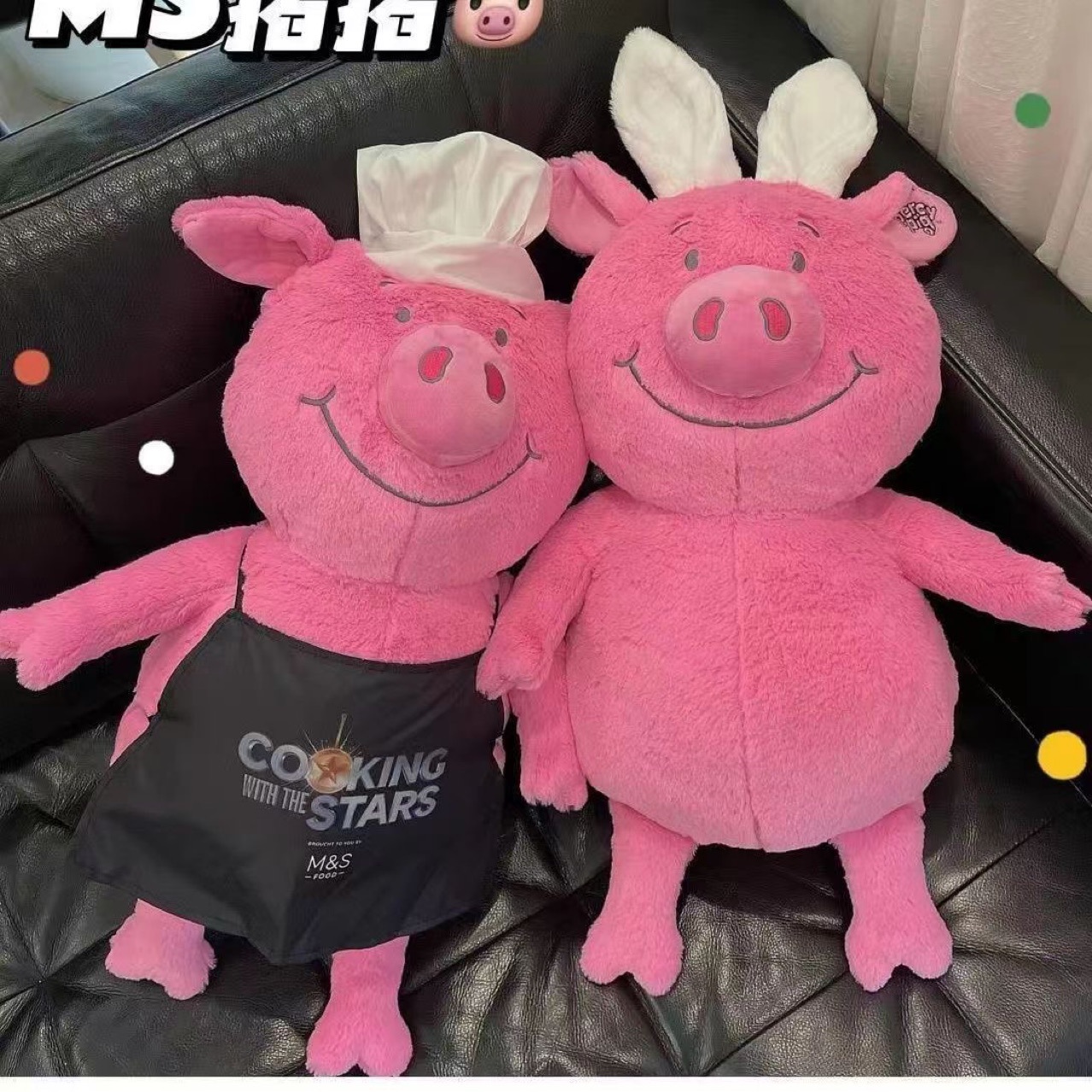 英国玛莎猪 percy pig 兔子厨师款猪猪大号可爱毛绒公仔玩偶娃娃