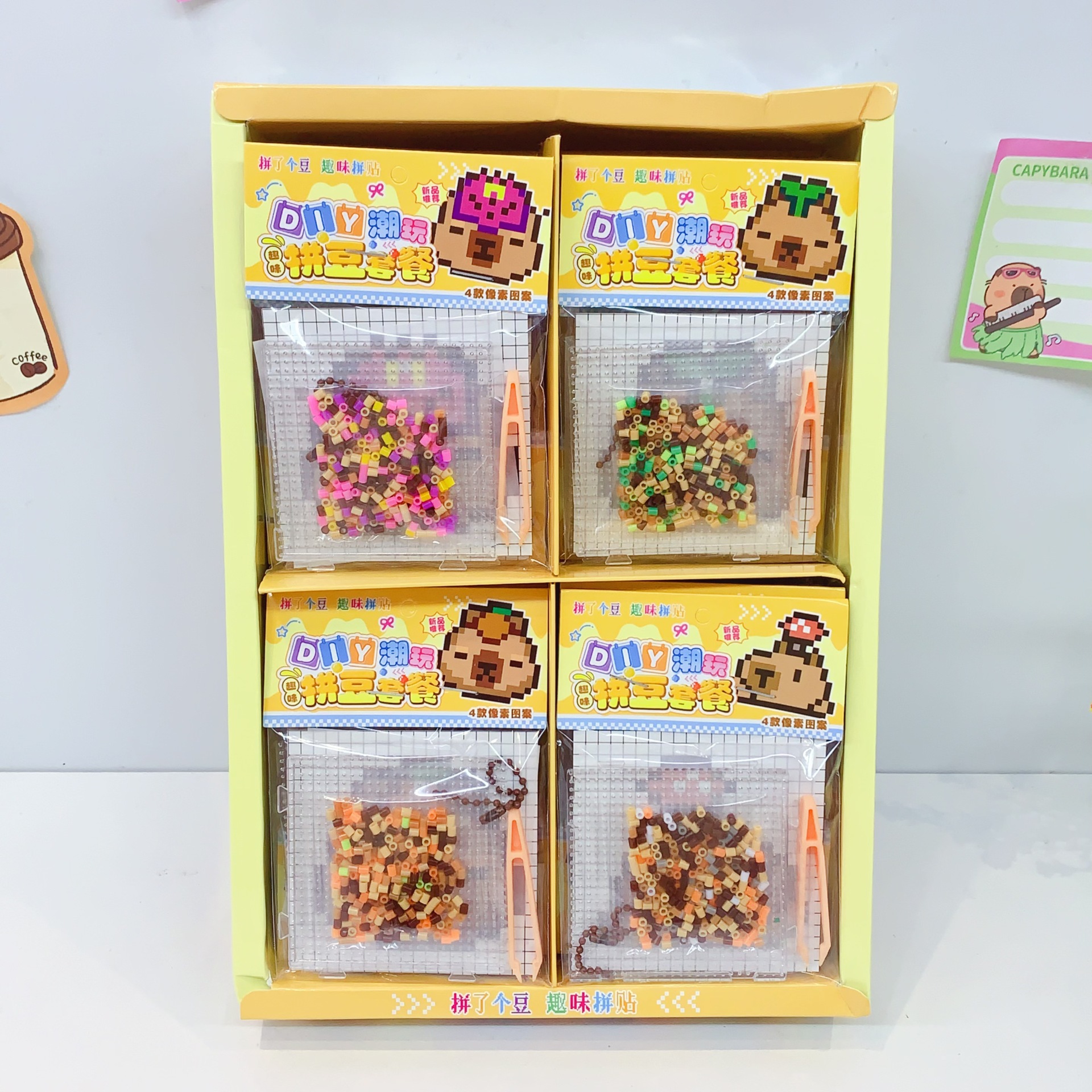 新款创意韩版玩具套装DIY潮玩拼豆套装卡皮巴拉系列儿童玩具批发