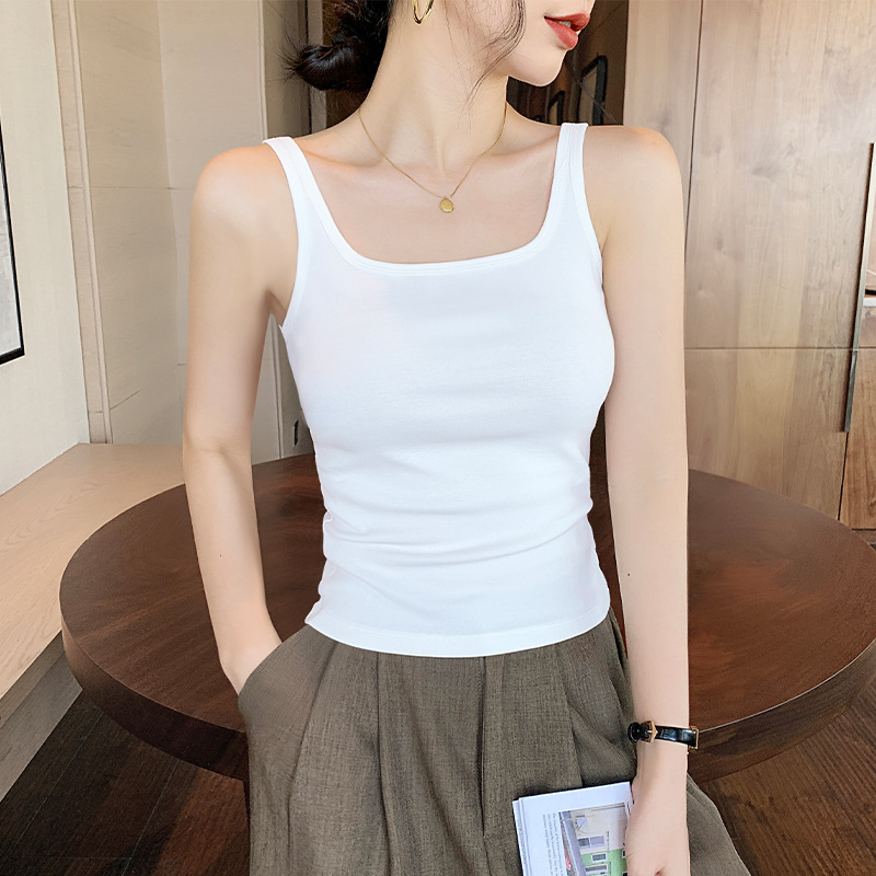女性用の白いスクエアカラーキャミソール、夏の胸をカバーするスーツ、2025年の新しいアウターレイヤリングトップ