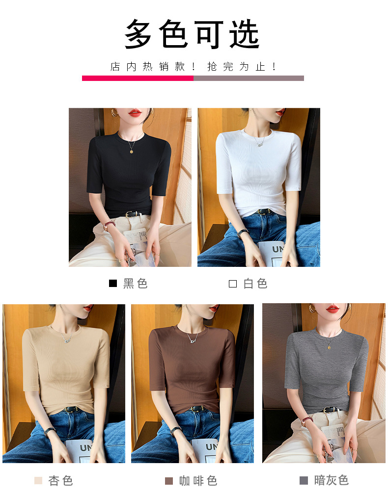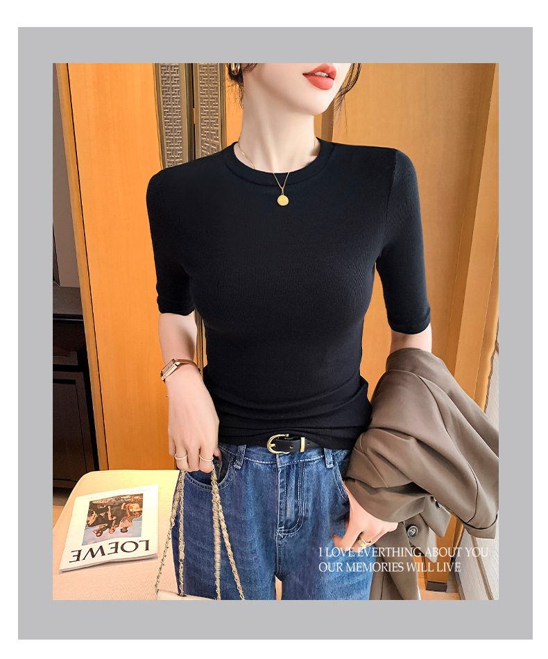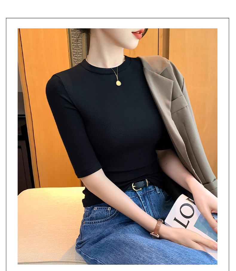 女性のための黒の小さなハーフタートルネックミッドスリーブTシャツ2025新しい春、夏、秋のタイトフィット5点ハーフスリーブニットボトムストップ