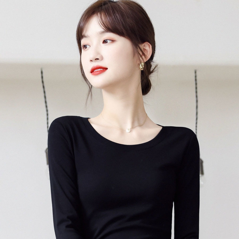 秋のラウンドネックモーダルブラックベルベットボトムシャツ女性用、秋と冬服2023新しい長袖トップ