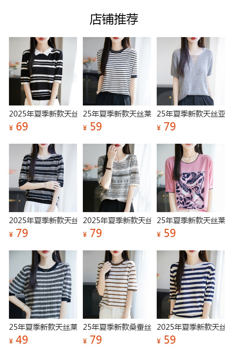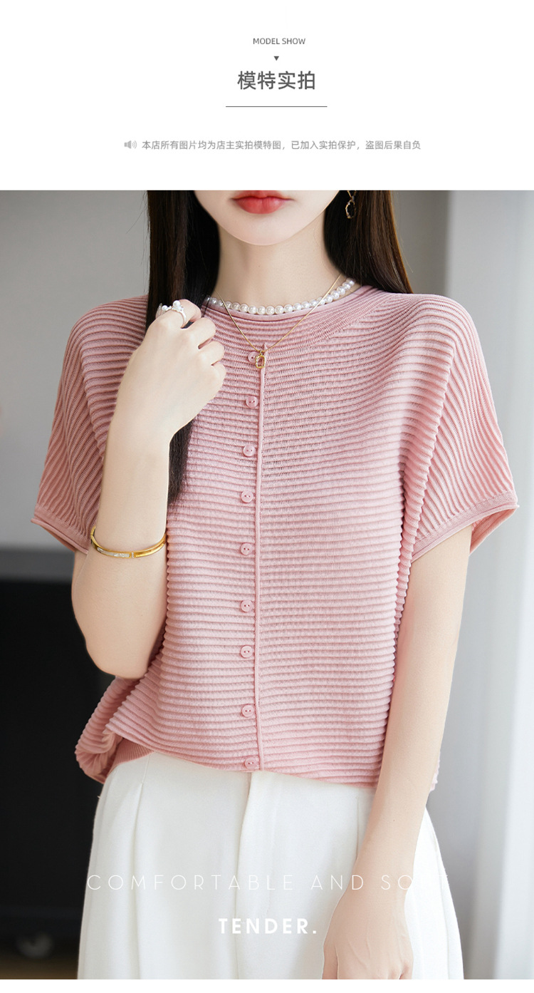 【メーカー直供】夏の薄いvネック天糸レディースtシャツ純色ジャカードゆるい氷糸半袖ニット