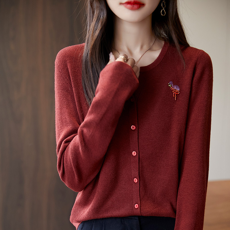 2025年初秋ウールジャケット レディース ハーフVネック ビーズ刺繍 ゆったり精編ニット オーバーサイズカーディガン