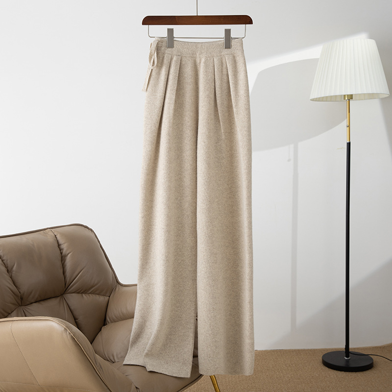 2025年秋冬新款纯羊毛针织休闲裤女褶皱纯色垂感宽松百搭阔腿长裤