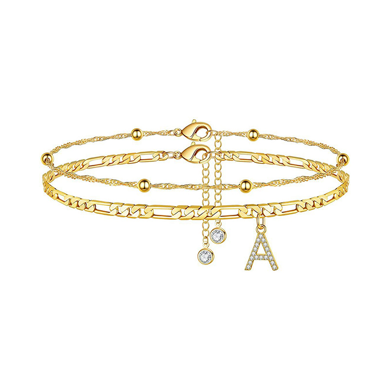 Amazon 新しい英語 26 文字象嵌ジルコンペンダント足 NK チェーン二層アンクレットビーチ休暇アクセサリー