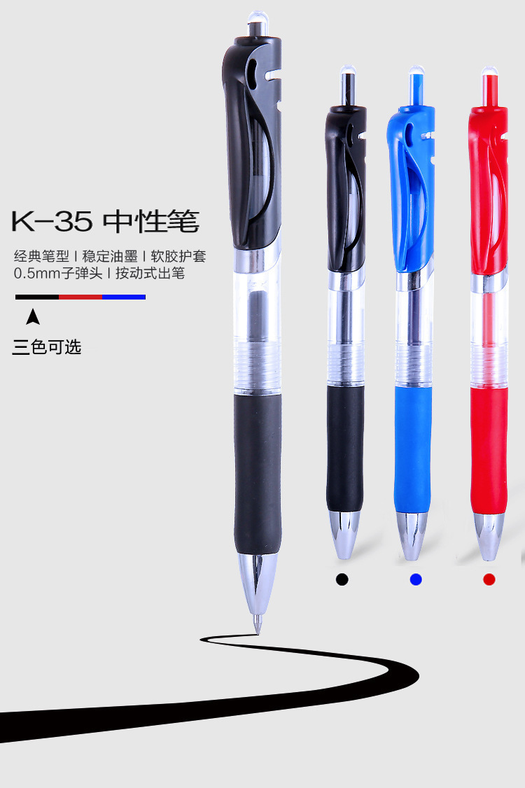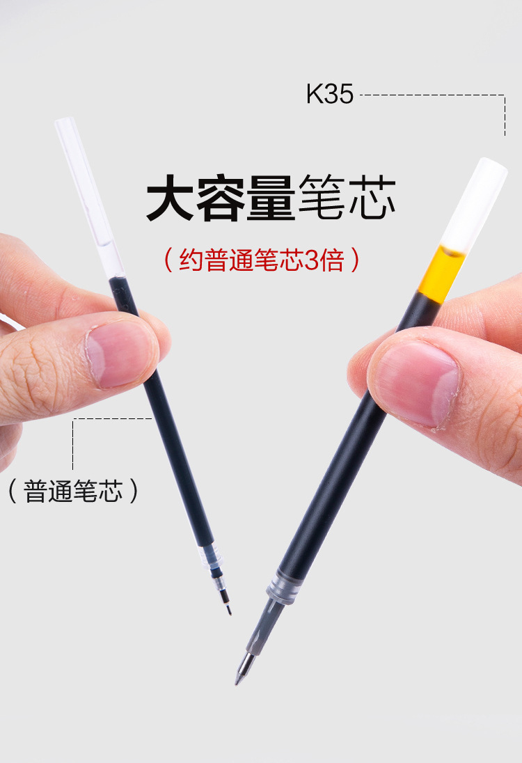 K 35は中性ペンのボールペンのサインペンの箱の文房具の学生の卸売りの試験の弾丸の頭の0.5mmの速乾を押します。