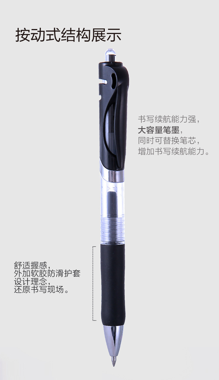 有力な中性ペンはペンの0.5mmの弾丸の滑らかなインクを押して、長い効果で事務文房具のサインペンを書きます。
