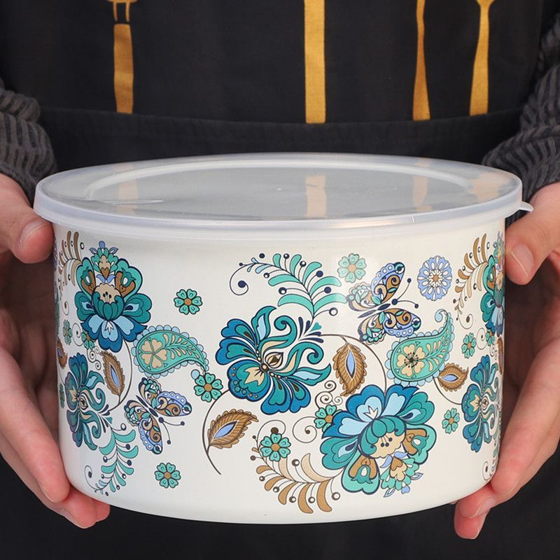带盖珐琅搪瓷碗套加高加厚保鲜盒密封可冷藏加热