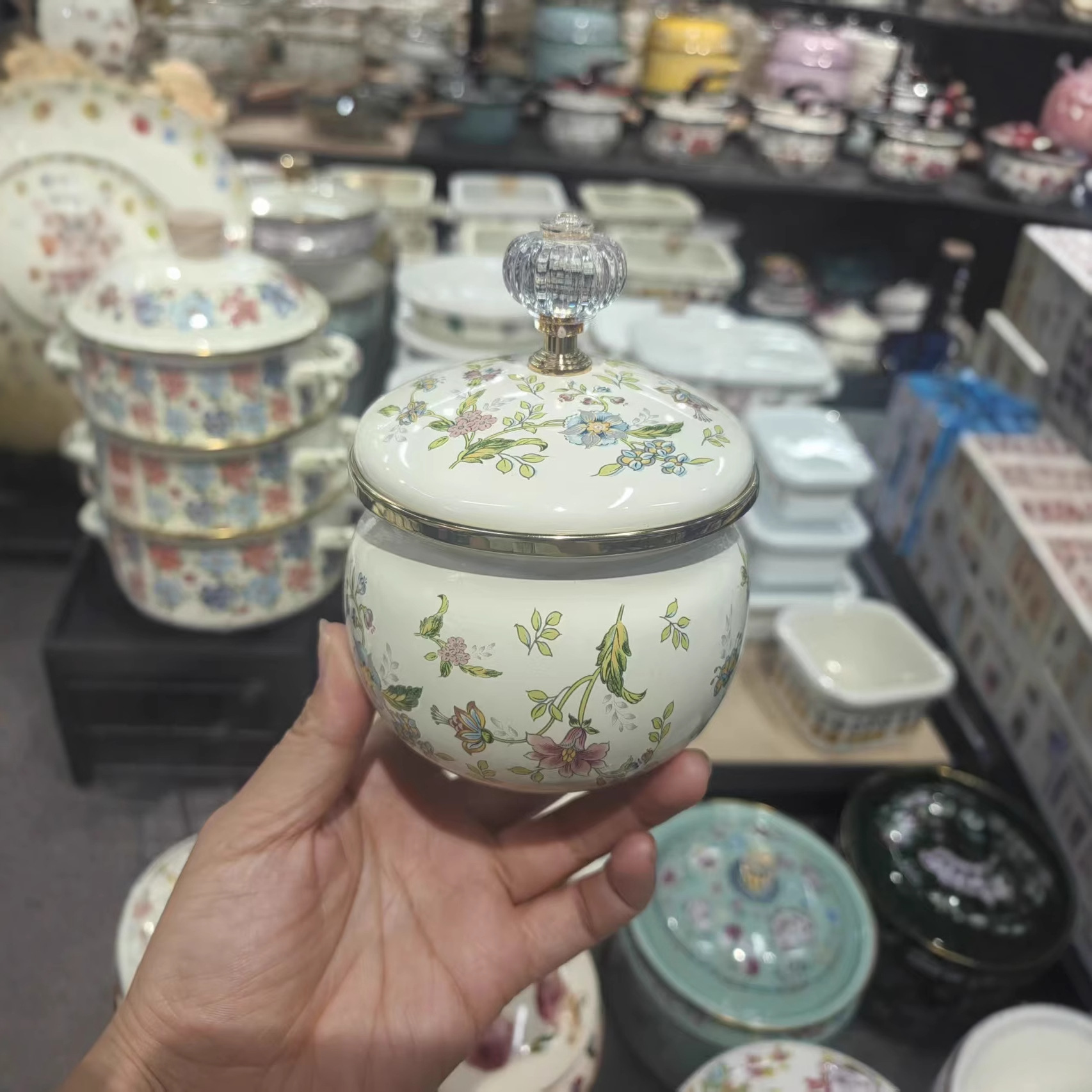 带盖珐琅搪瓷罐油罐糖罐咖啡杯壶耐高温无图层调味香料罐家用茶罐