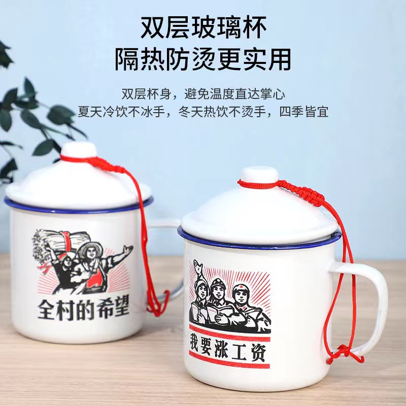 懐かしい名言入りレトロエナメルタンブラー、昔ながらの茶壺、マグカップ、柄デザイン、広告ギフト、卸売水筒