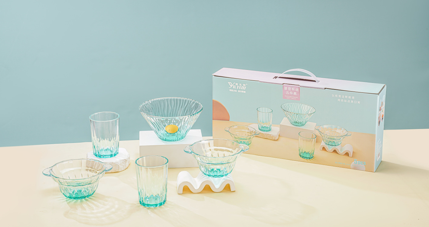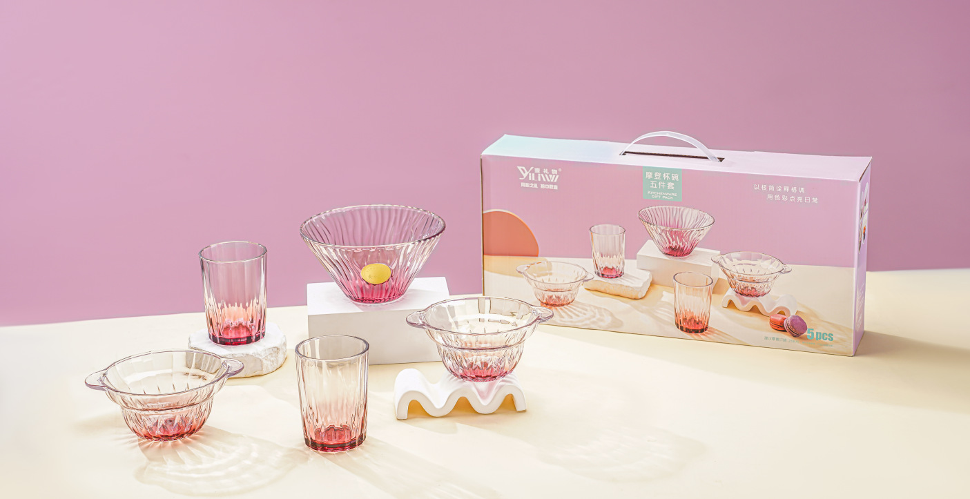 1 ギフトモダンカップとボウル 5 点セットイベントプロモーションオープニングギフト卸売グループ購入ガラスボウル食器セット