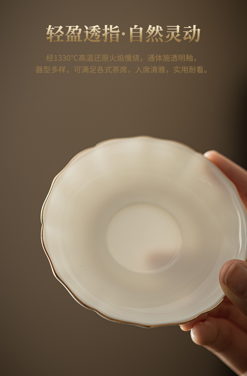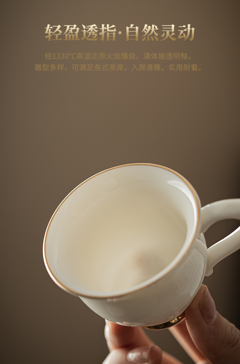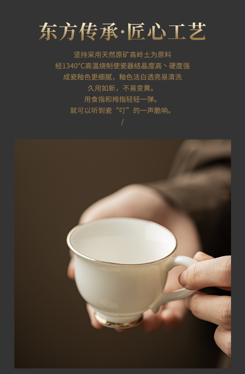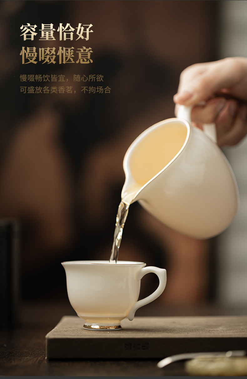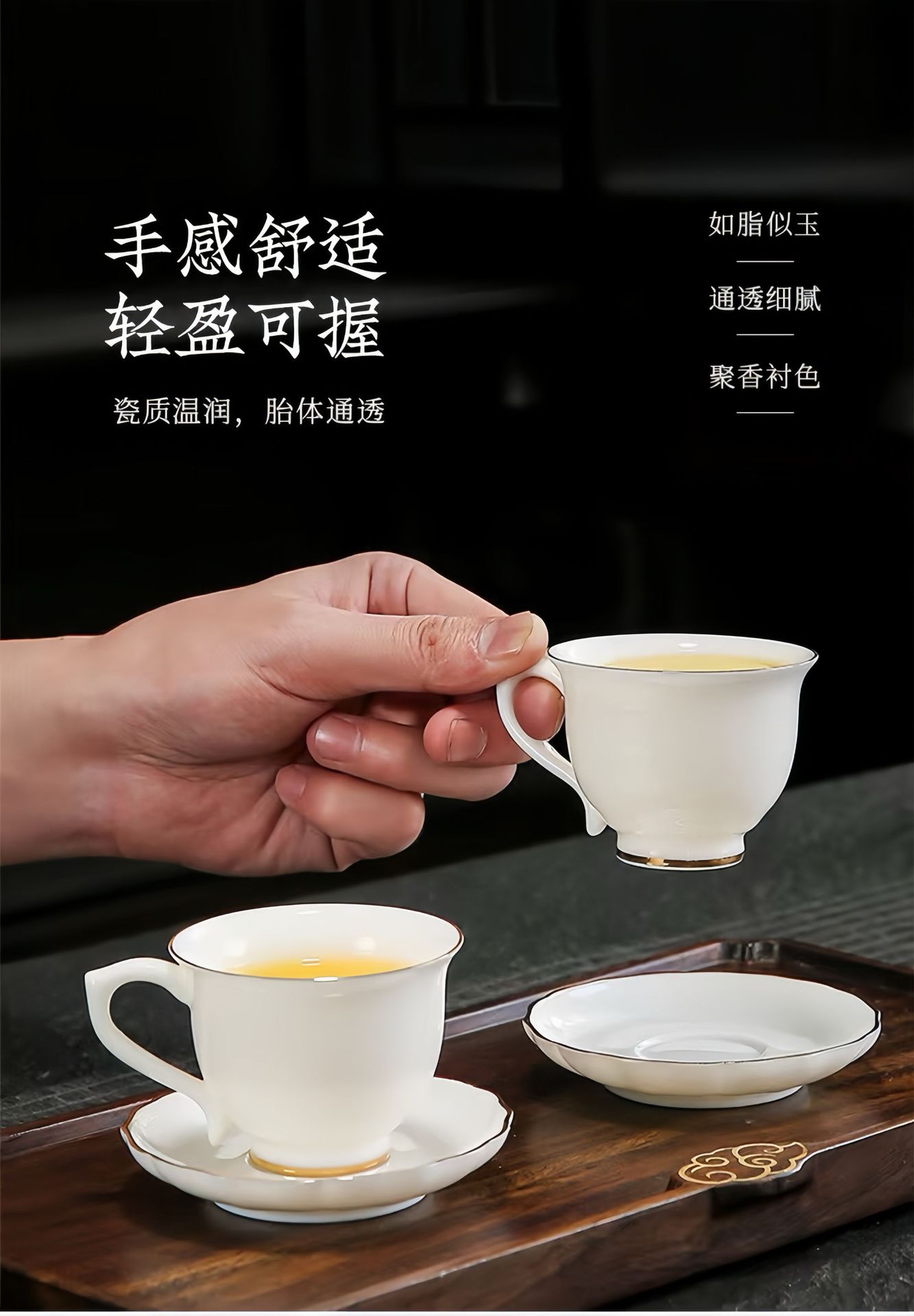 羊脂玉茶杯 白磁 カンフー茶器 茶道具 陶磁器 金縁 茶鑑 茶杯 主人杯 国潮風 茶道用
